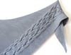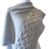 The Tank Stream is the waterway that sustained the first convict settlement during the late 18th century in Sydney, Australia. Tank Stream shawl is a huge cosy wrap, knitted in garter stitch, with a cascade of relaxed cables down one side. The shawl was created using Fair Dinkum DK, a soft and sustainable merino wool yarn, from Dingo Dyeworks.