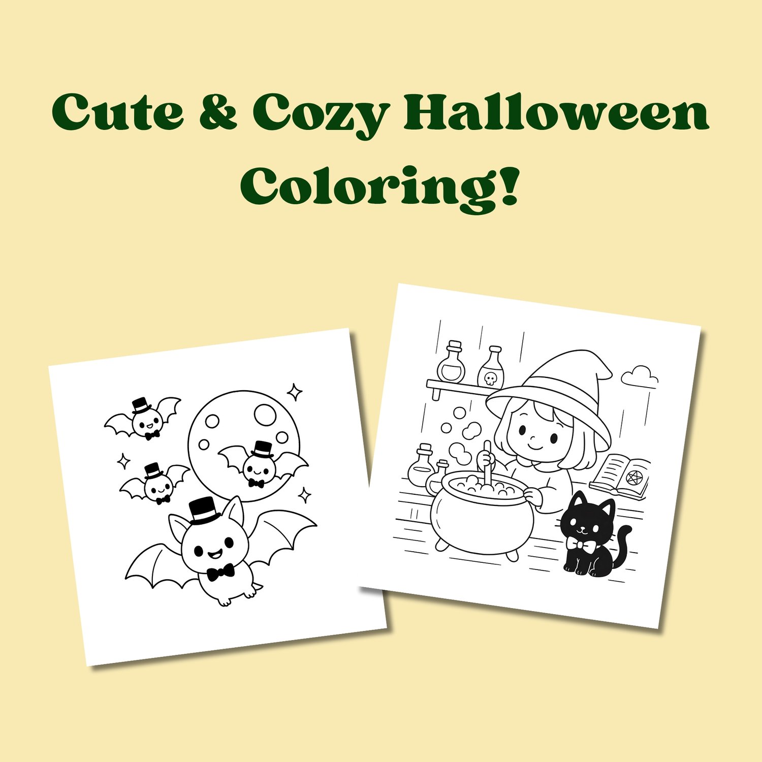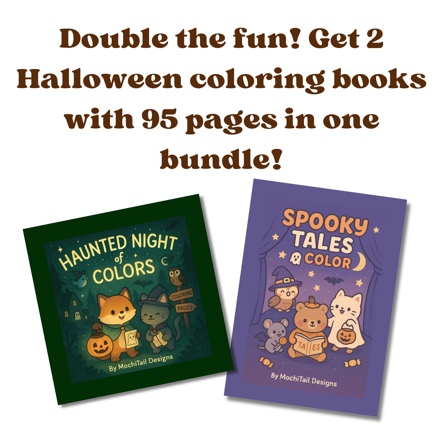 Get 2 spooky-cute Halloween coloring books in one bundle and enjoy double the coloring fun!