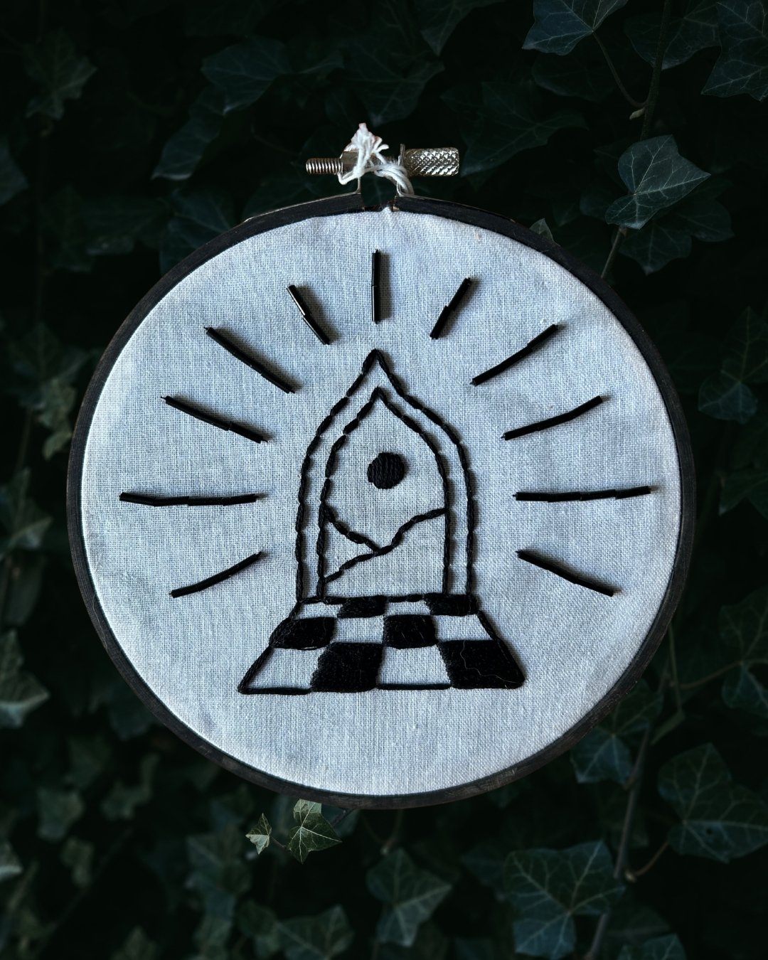 This whimsical hand-stitched 5-inch embroidery is the perfect addition to any abode. Enter the door to your Past, Present, Future.