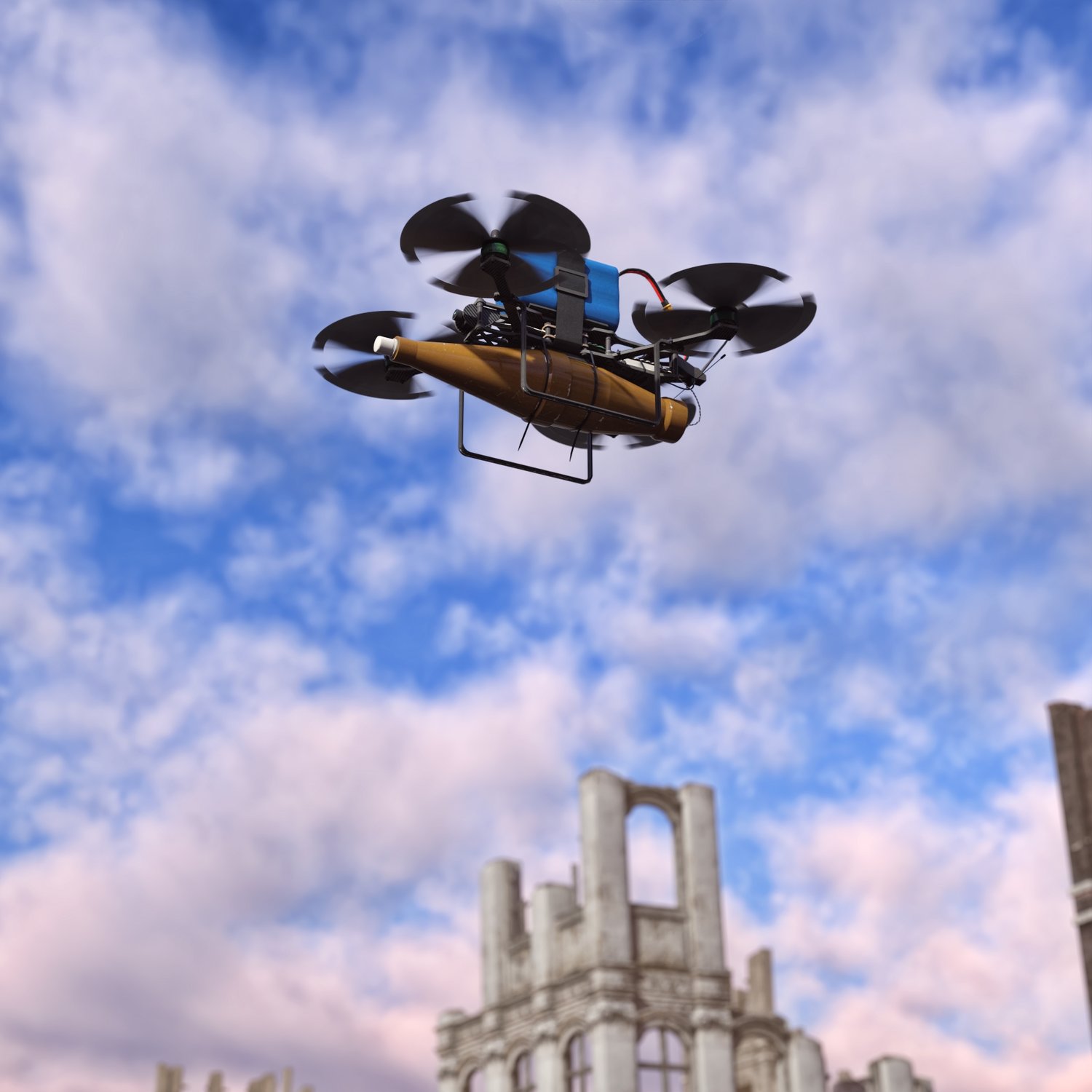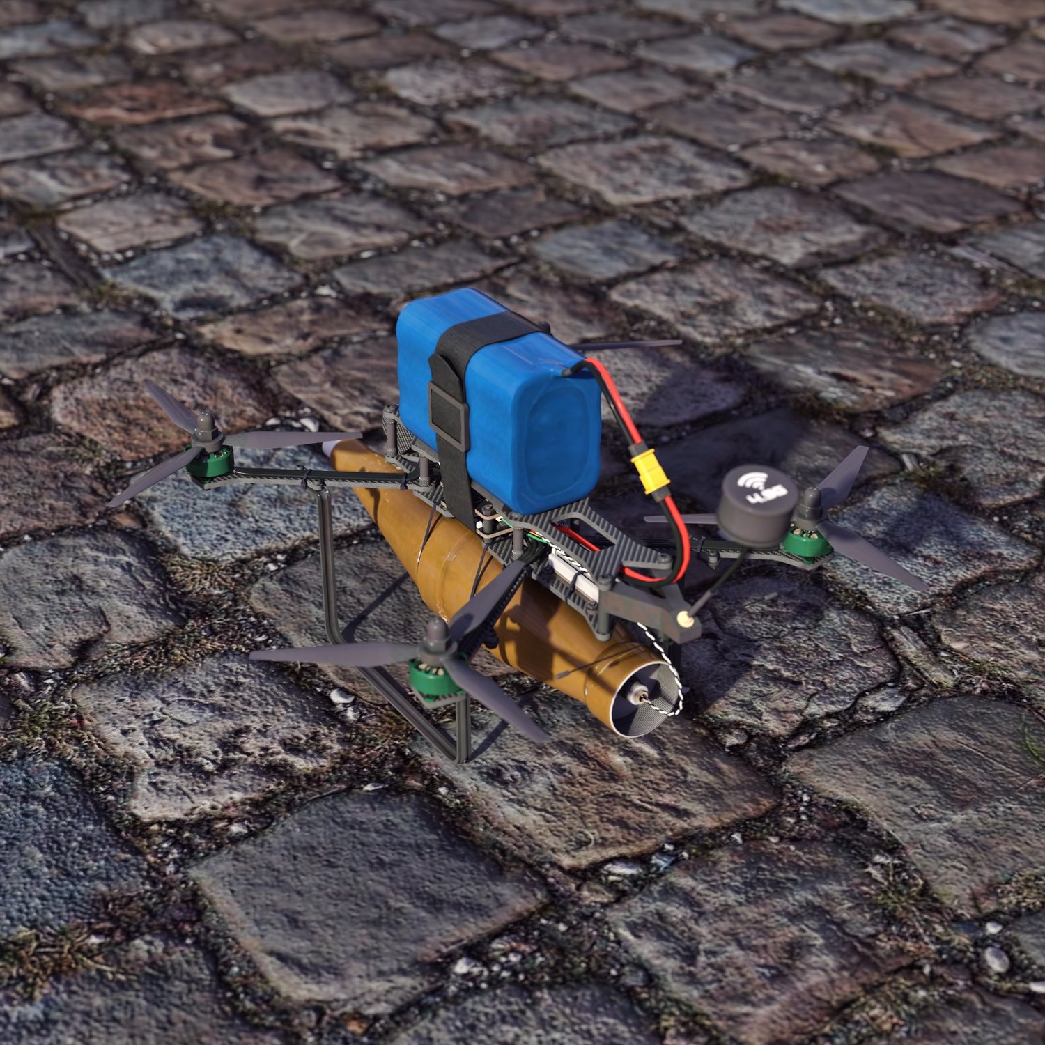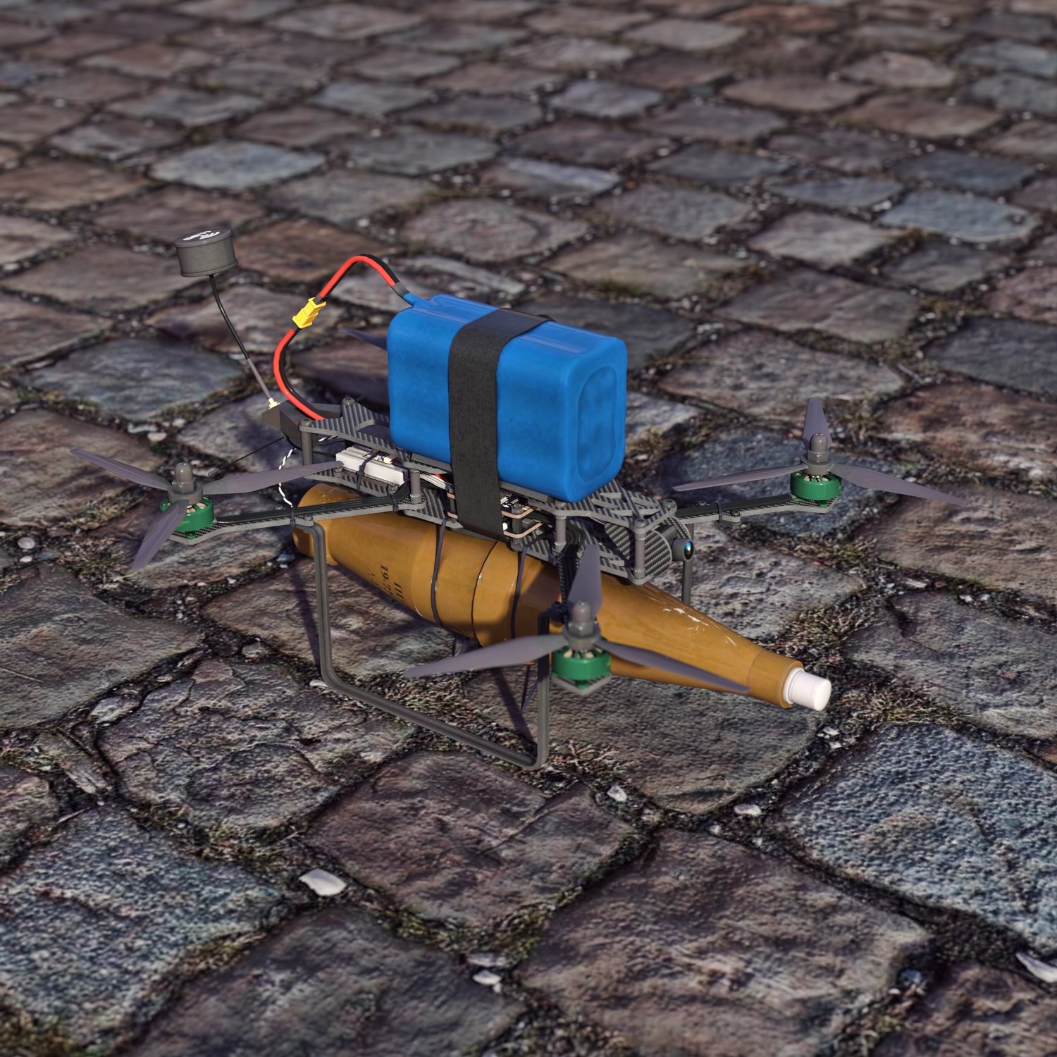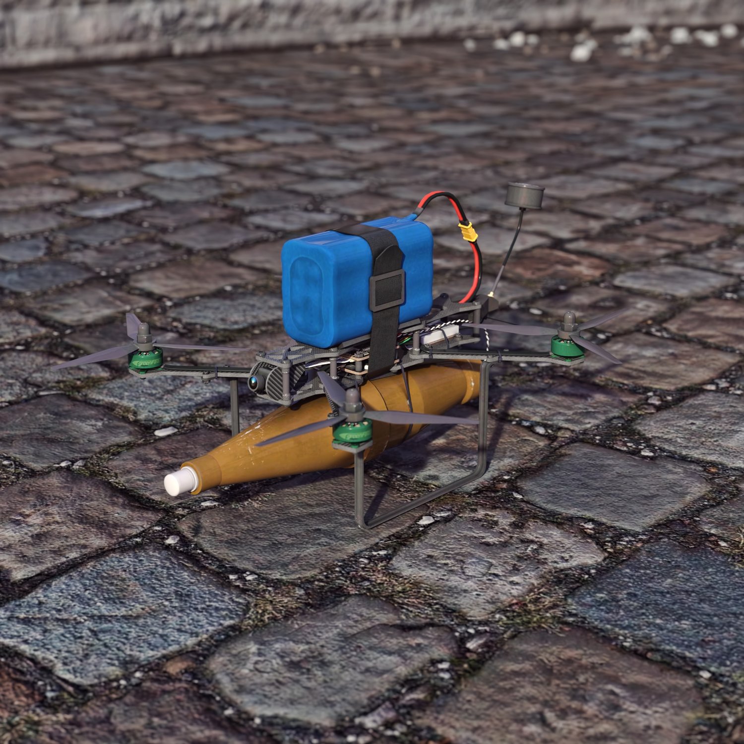 A small distantly controlled quadcopter adapted for military use. A bane of modern open battlefields. When used correctly, it can change the way modern wars are fought. Converted and rigged for use in DAZ. Has rigged parts for more realistic pictures. The armament includes an RPG 7 warhead which can be effective against armored vehicles and infantry.