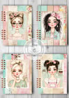 - 2 modelos de interiores de 100 hojas rayadas color celeste y rosa a tono con las portadas con sus variantes para imprimir en tamaño A5 para anillado y costura