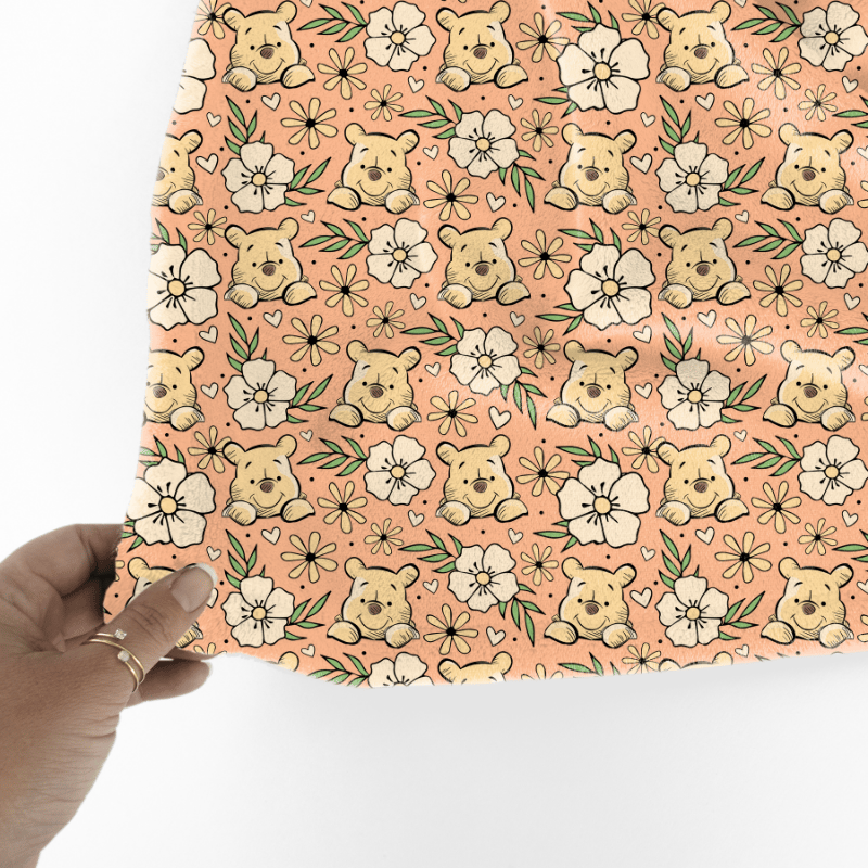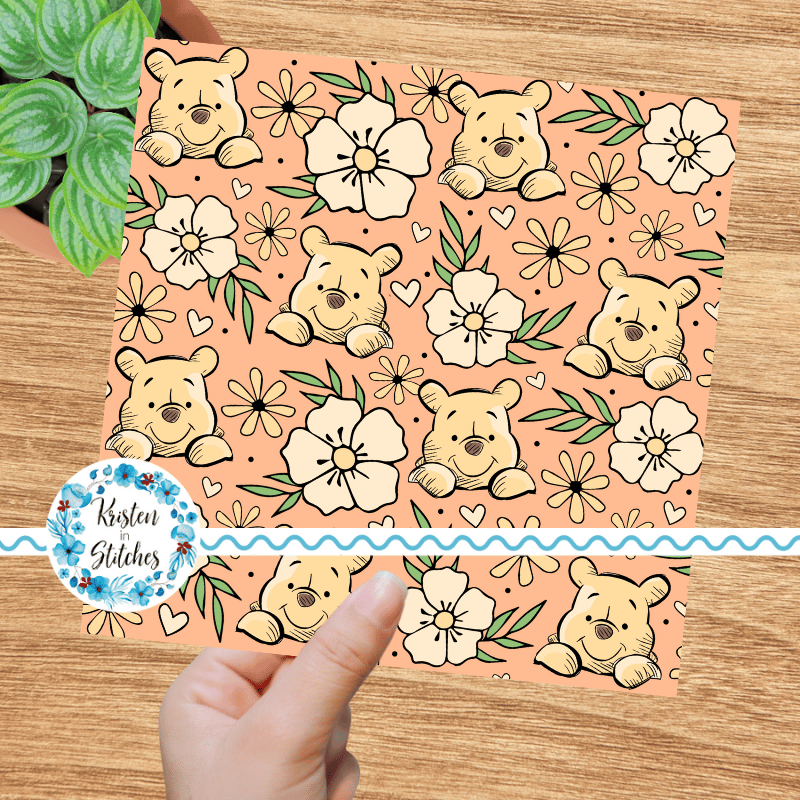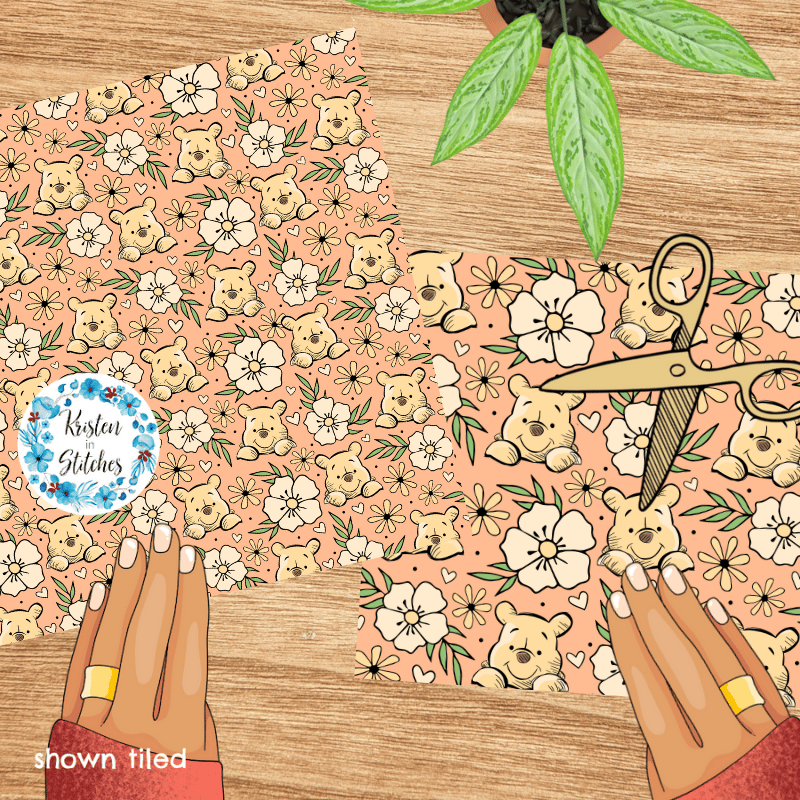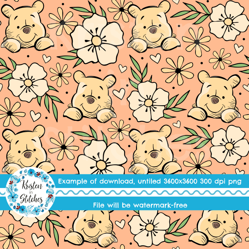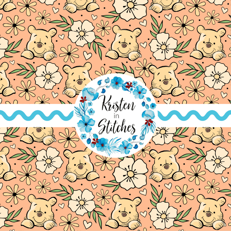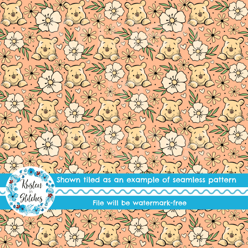 Pooh Bear Floral Seamless Pattern, Classic Winnie the Pooh Nursery, Peach