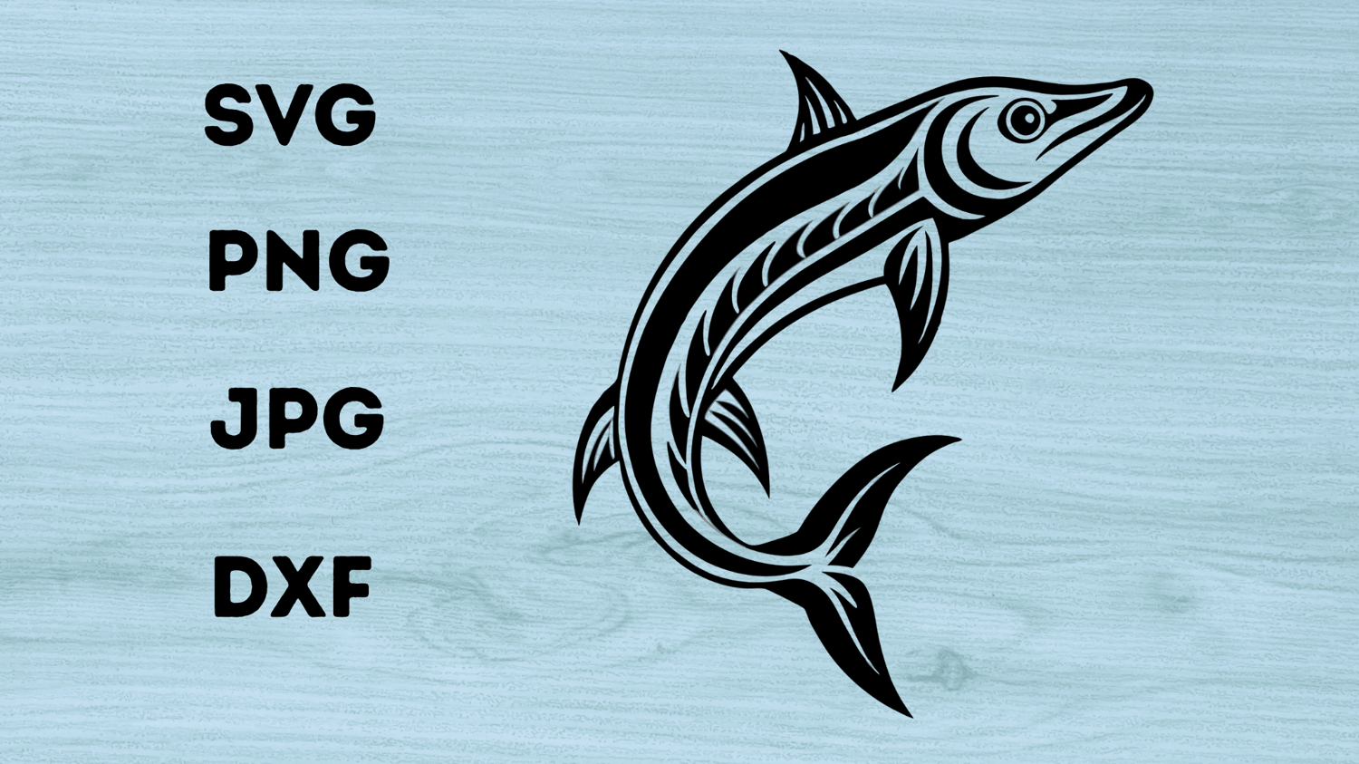 Tribal Barracuda Design – Digital Download (SVG, PNG, DXF, JPG)
