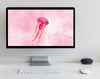 Featuring a jellyfish illustration in a soft digital watercolor style, this artwork is perfect for anyone who wants to add a touch of calm and creativity to their screen while keeping it neutral and elegant.