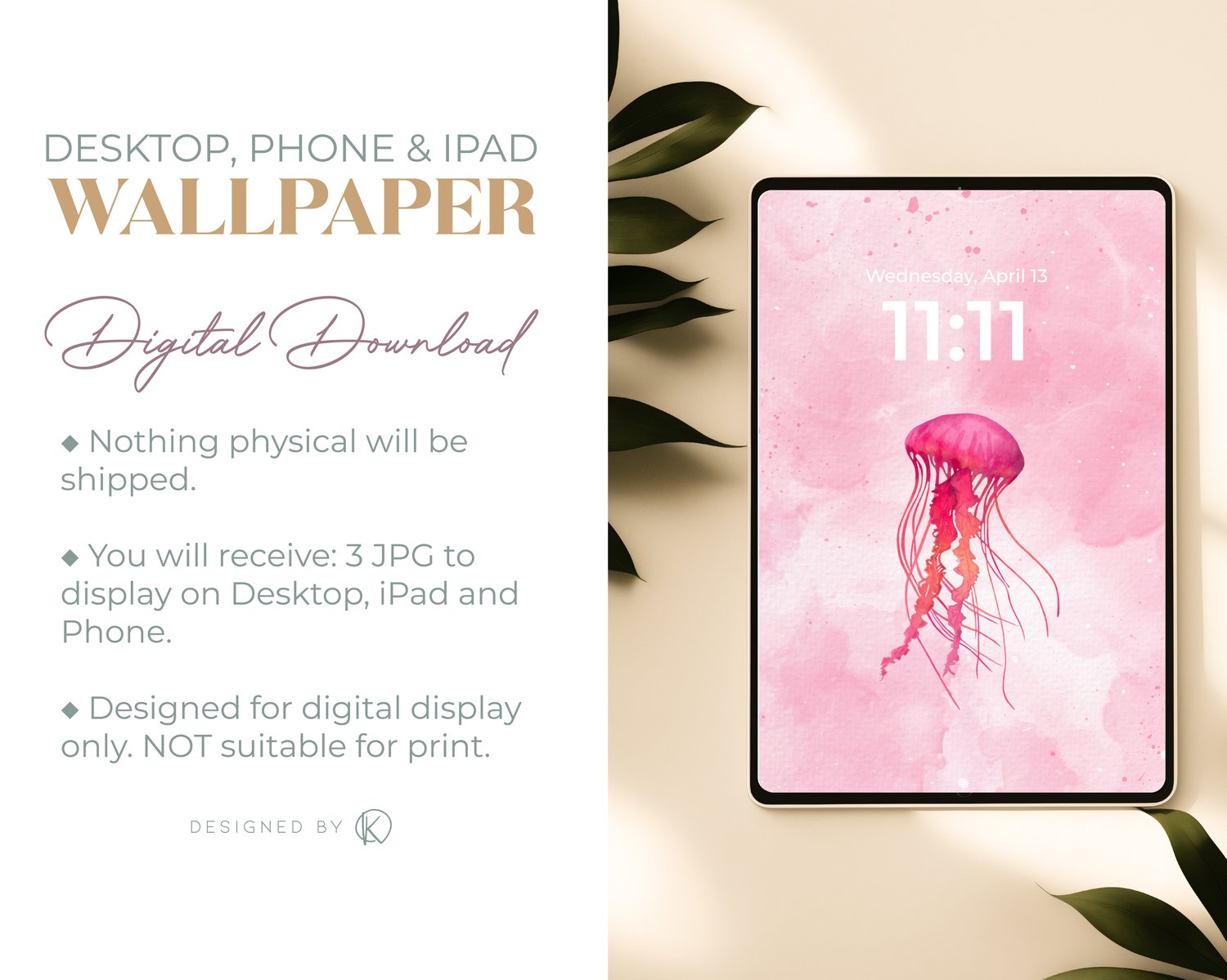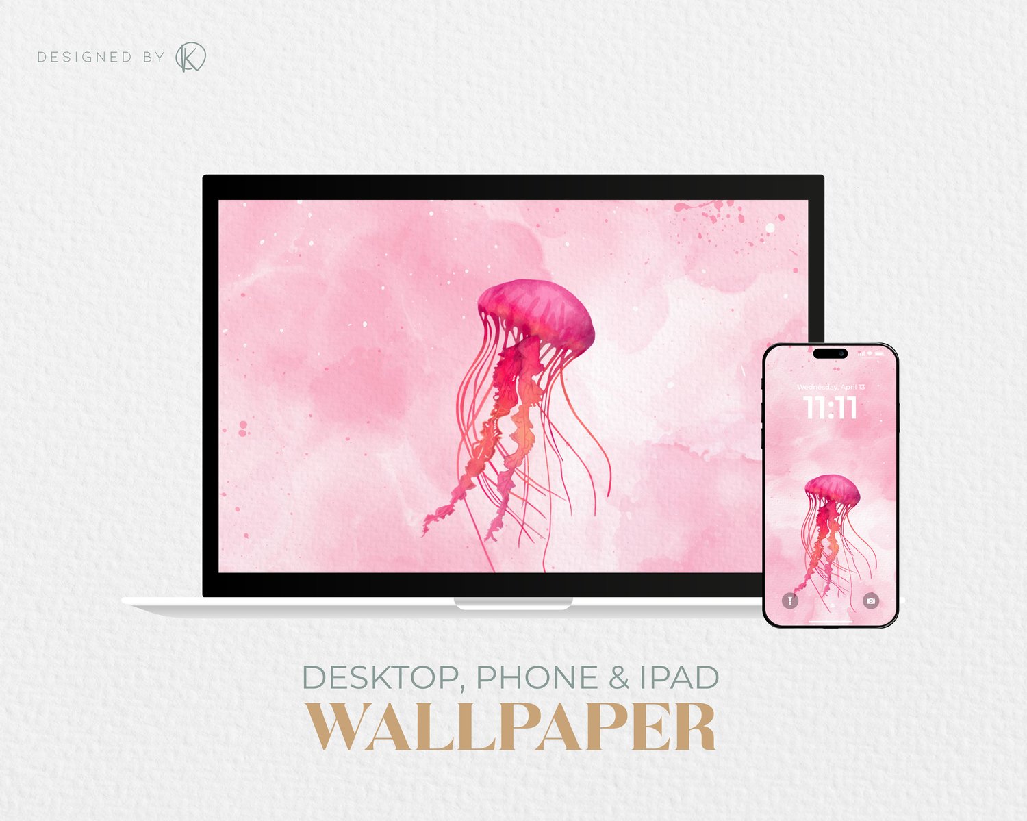 Jellyfish – Digital Watercolor Wallpaper Set (Phone, iPad & Desktop)
