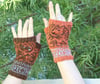 This is a pattern for a pair mitts or muffatees. These muffatees are worked from the cuff up and in the round, placing thumb sts on holder, working the rest of the palm, and then working the thumb ribbing.