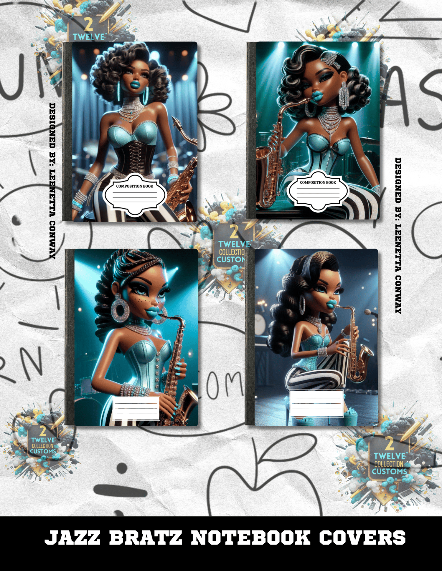 Jazz Bratz Composition Notebook Covers Canva Template 4 Pack