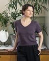 Tämä on kevyt kesäpaita, jossa on hennot pitsipaneelit olkapäillä ja lyhyissä hihoissa. Paita neulotaan ylhäältä alas käyttäen contiguous-rakennetta, joilla muotoillaan paidan yläosa alkaen olkapäiltä ja jatkaen kainaloihin. Kaikki neulotaan saumattomasti, vain muutama silmukka poimitaan kainalosta. Vartalomuotoiluja ei ole, mutta niitä voi helposti lisätä.