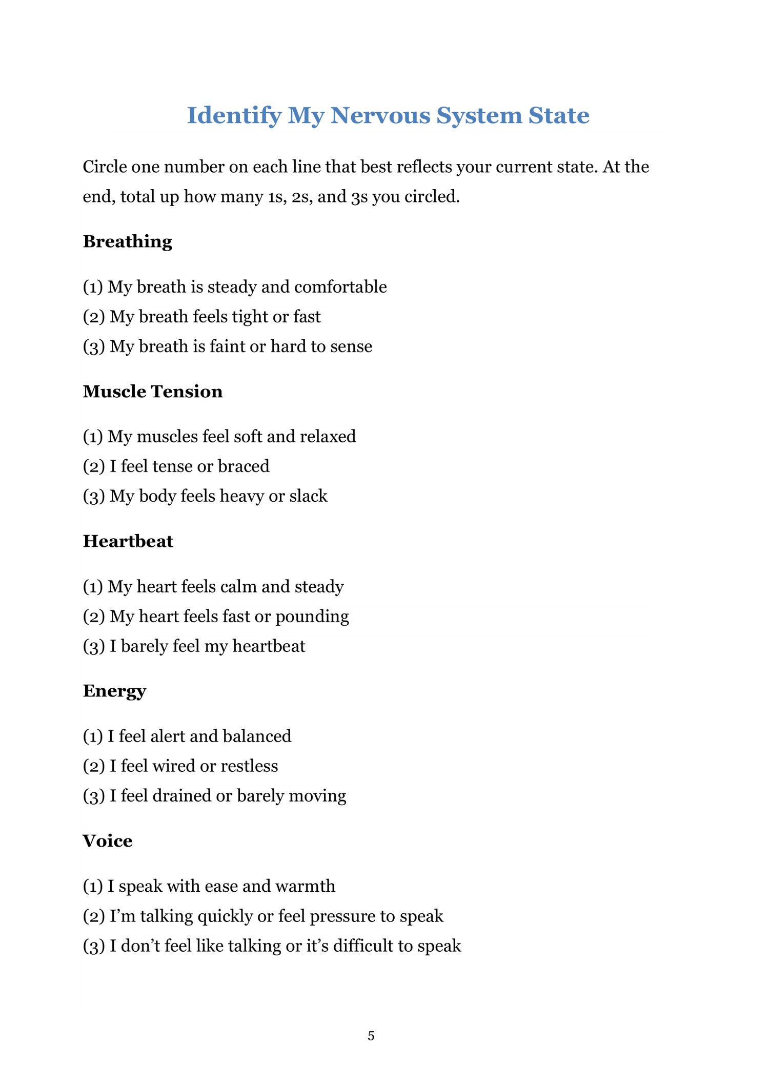 - Help you identify whether you're in fight, flight, freeze, or fawn states