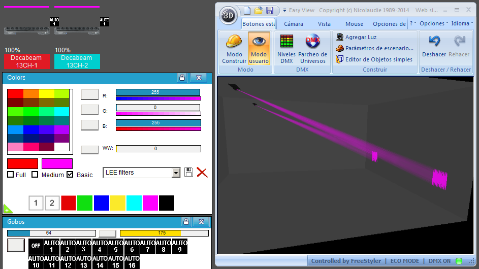 Esta Librería SSL2 está optimizada para trabajar con Magic 3d Easy View. Es decir para ver una representación 3D de las secuencias que estemos realizando con Freestyler, QLC+ o cualquier otro soft que se conecte con Magic 3d.