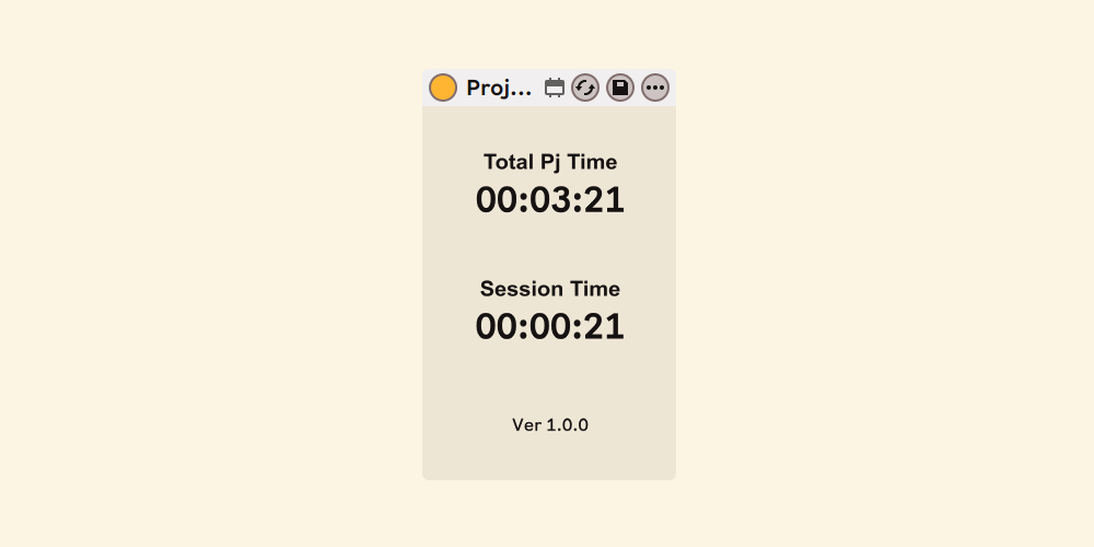This is a straightforward Max for Live device designed to track time elapsed. It displays both the cumulative duration of the project and the duration of the current session.