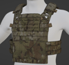 Fulcrum plate carriers provide a slick plate carrier profile that can be upscaled in load carriage by the application of front magazine carrying placards and zip-on back panels.