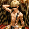 男性ショーダンサーをテーマに、ジョックストラップとサスペンダーを着せて、ポールと鳥かごをテーマに、キャラクターの魅力を存分に表現しました。