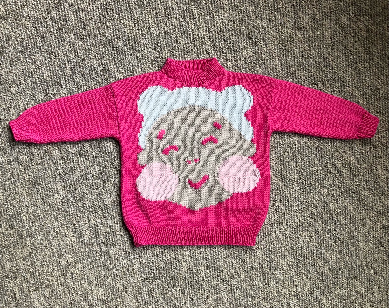 ENGLISH Karma Sweater KIDS is worked top down with intarsia, has a regular fit and pockets and comes in 6 sizes ages 2 to 12 years old. Knit the hair with or without top knots. The pattern has two chapters. Chapter 1: How to knit the Karma Sweater. Chapter 2: How to knit intarsia with step by step pictures. The Sweater is worked with one strand of Camilla Vad Lambswool 9/3. The pattern has charts for front and back for each size.