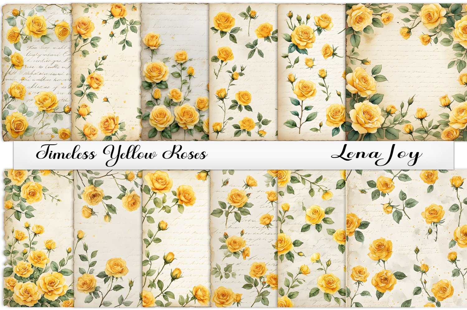 Brighten your design with these lovely yellow rose backgrounds. They are versatile and can be used for layouts, junk journal pages, note cards, and invitations. Some of the papers have handwriting on them.