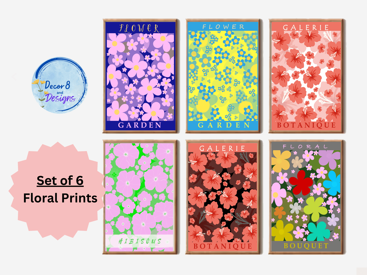 Set of 6 Flower Gallery Prints Floral Wall Art Abstracts