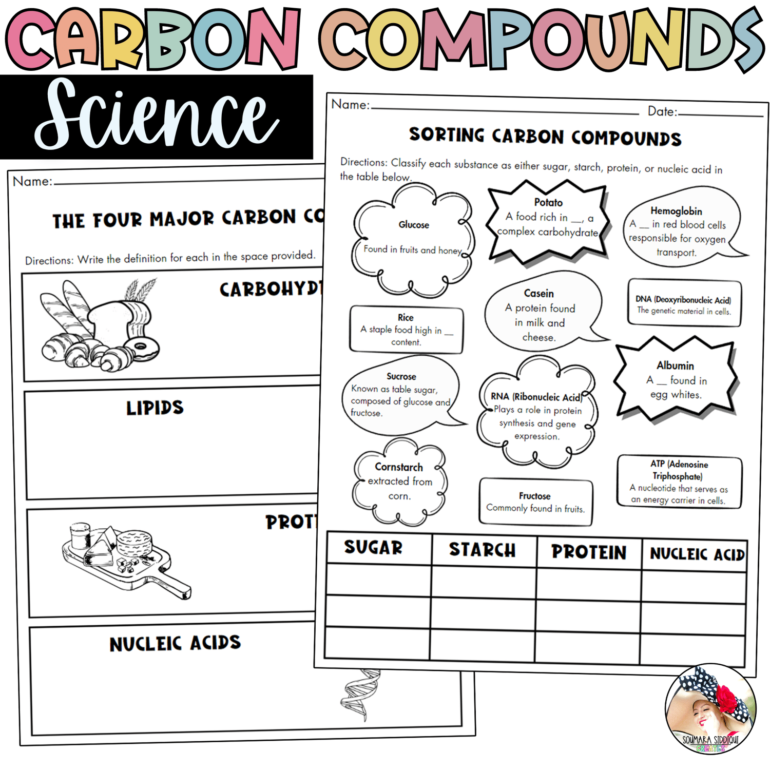 This resource will help students reinforce learned knowledge about carbon compounds. Students will show their knowledge on sugars, starches, proteins, and nucleic acids with the sorting activity included. While studying carbon compounds students will use critical thinking and problem-solving skills as they explore how different molecules interact, how they are used by organisms, and how changes in these molecules can affect living systems.