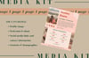 - 1 page media kit template, ready for you to customize with a profile photo, profession and about, social media links, contact information, and statistics and demographics.
