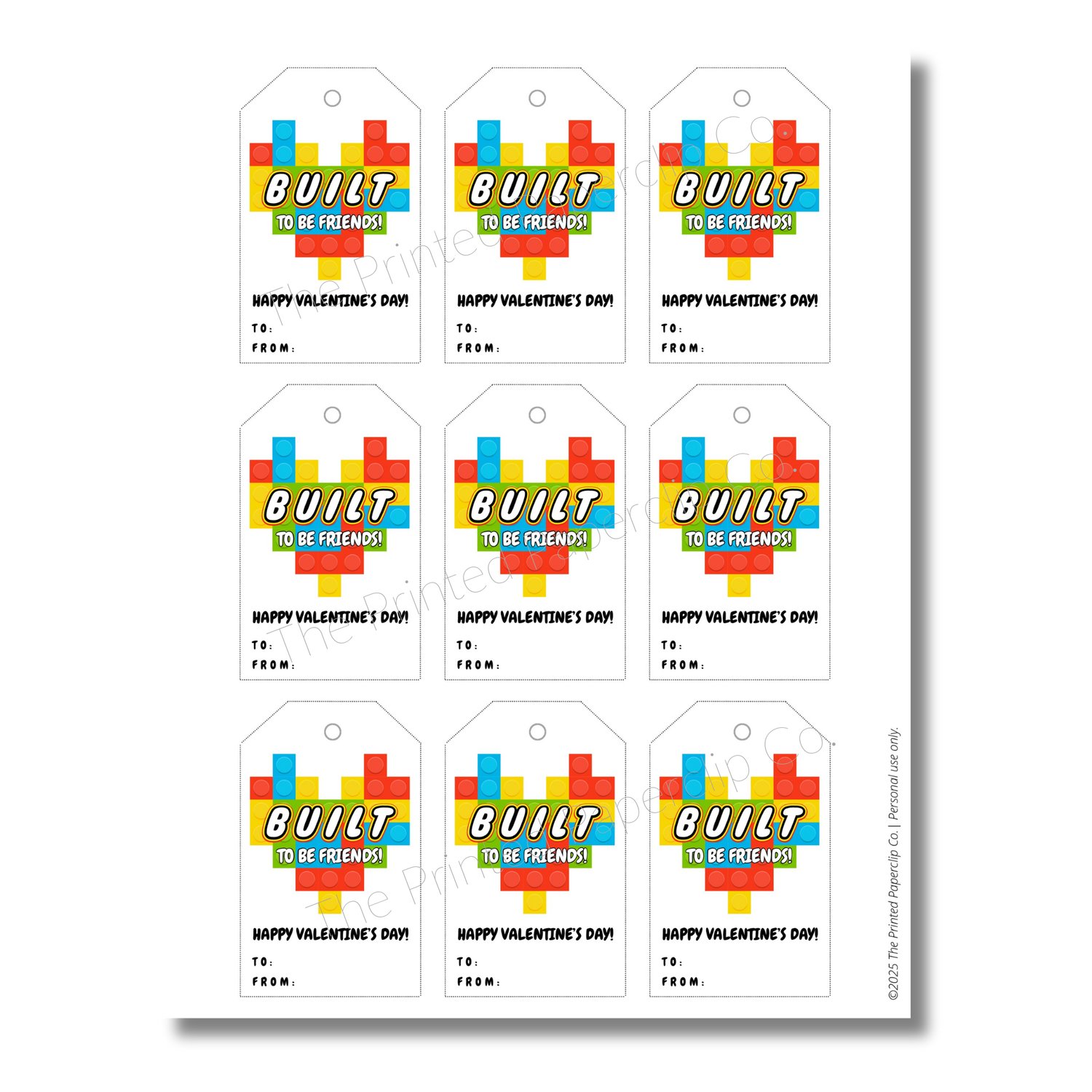 Built To Be Friends! - Valentine Printable Gift Tag