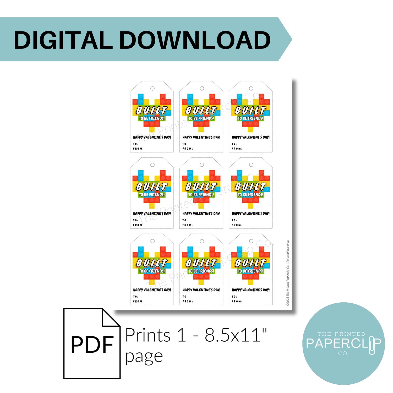 Make Valentine’s Day gifting simple and fun with this Built to Be Friends! printable Valentine gift tag. Featuring a playful LEGO-style heart, this tag is perfect for pairing with small building bricks or brick-themed treats.