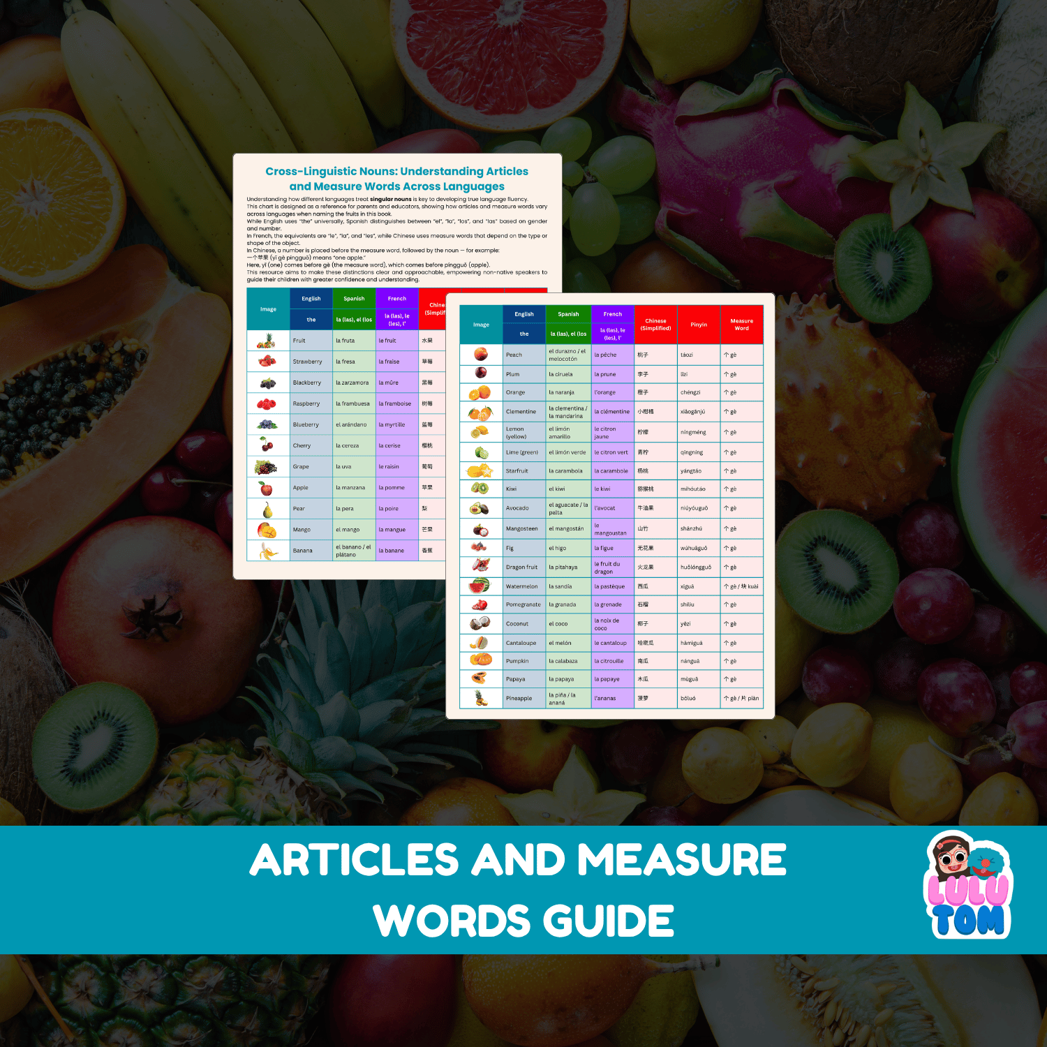 A joyful, practical way to bring the world of fruits — and languages — to life with Lulu & Tom! 🍉🌎