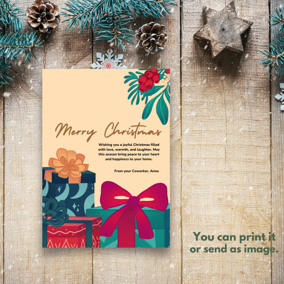 Easily download, edit, and customize this template with your name, your text, or your personal message. Whether it's a heartfelt "Merry Christmas" or a thoughtful note for the season, this template is designed to fit any occasion. Use it to accompany gifts or share on social media to brighten someone's day.
