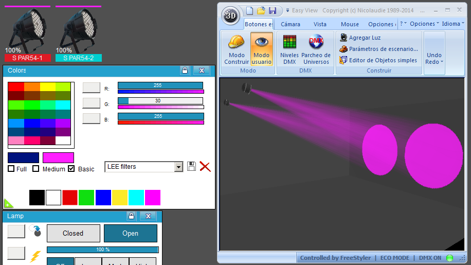 Esta Librería SSL2 está optimizada para trabajar con Magic 3d Easy View. Es decir para ver una representación 3D de las secuencias que estemos realizando con Freestyler, QLC+ o cualquier otro soft que se conecte con Magic 3d.