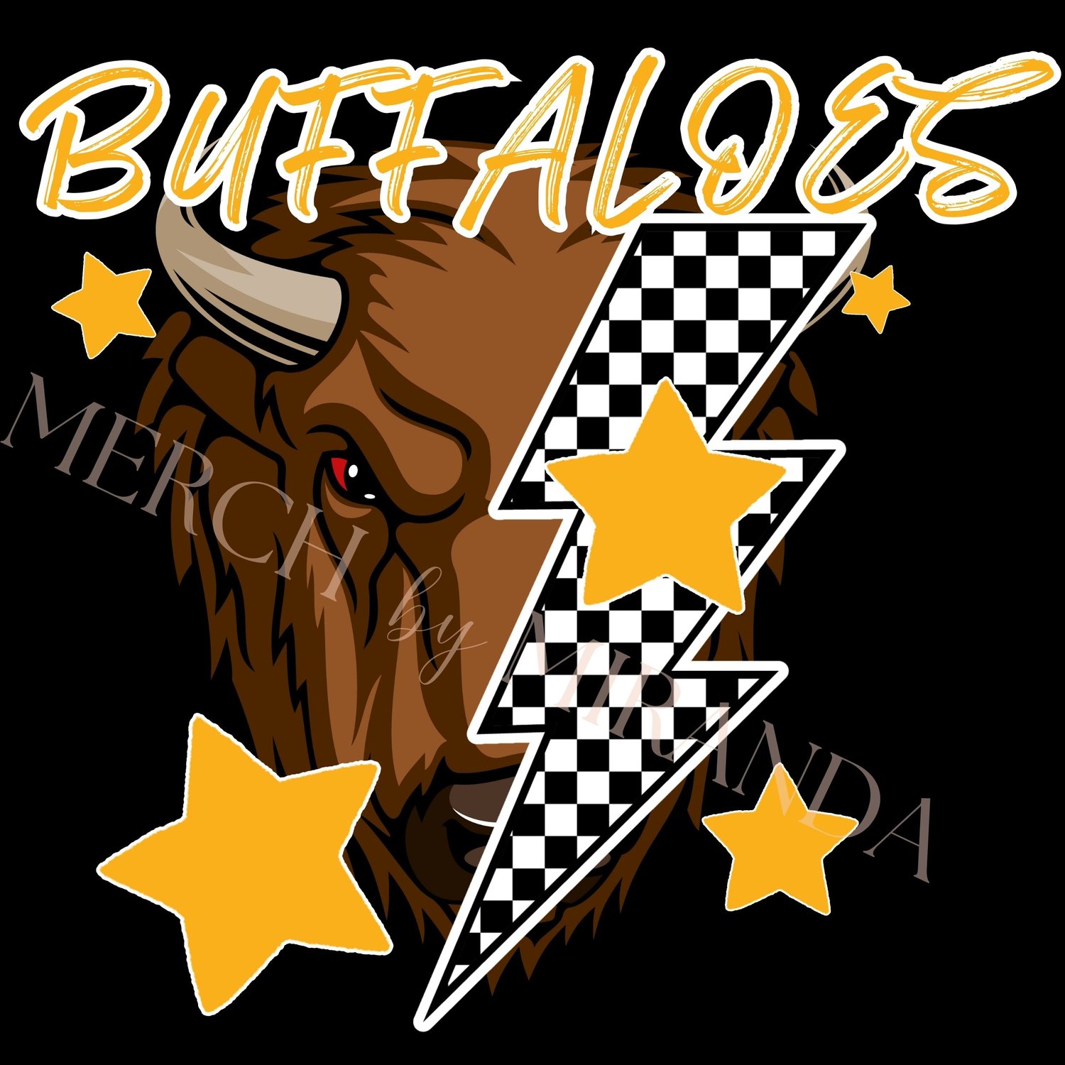 Buffalo Mascot Gold | Sublimation Design | Digital Download | School Spirit Shirt PNG | DTF Design | Lightning Bolt-Checkered with Stars - Buffaloes