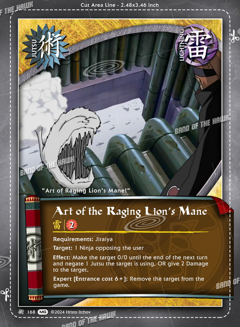 j168 - Art of the Raging Lion's Mane Jutsu card from our Might Guy card set for Naruto CCG.