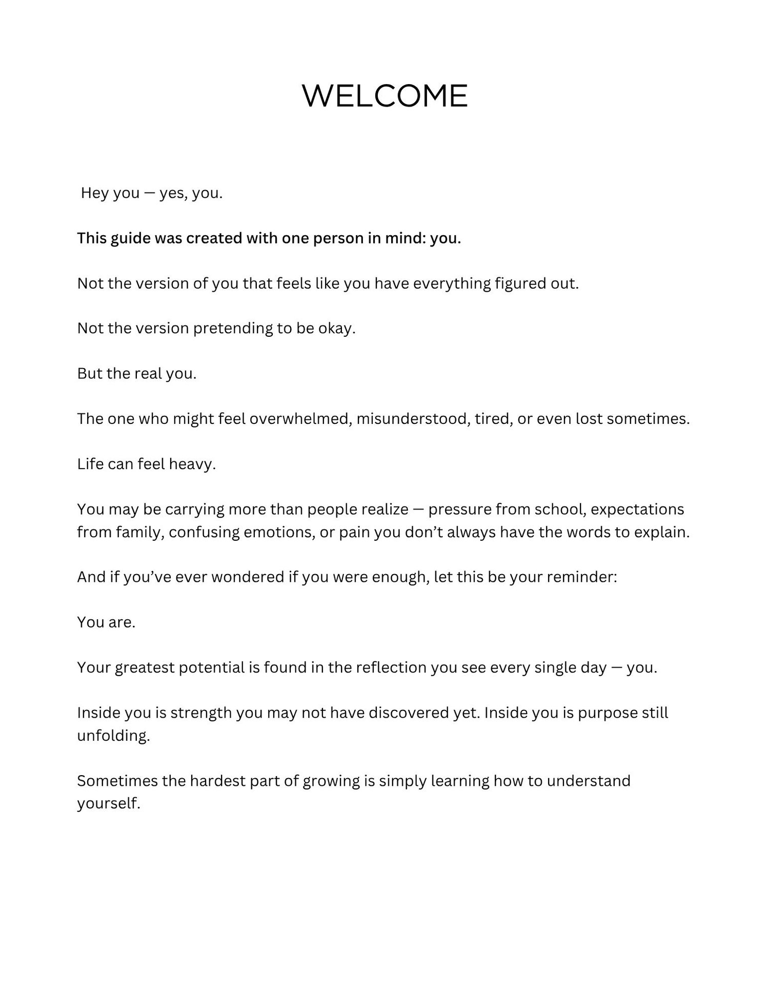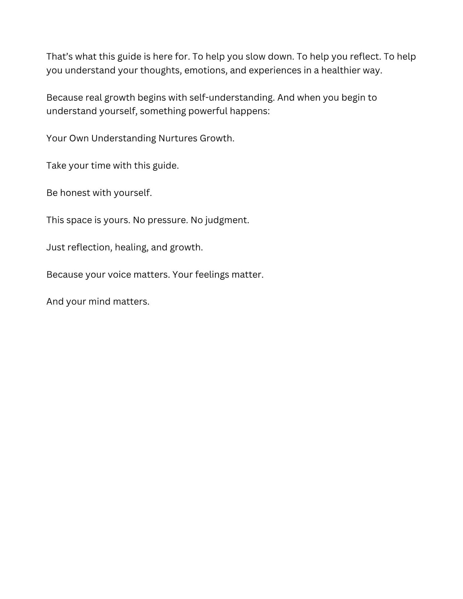 This guide was created to help young individuals understand what they’re feeling, process it in a healthy way, and build awareness before those thoughts take control.