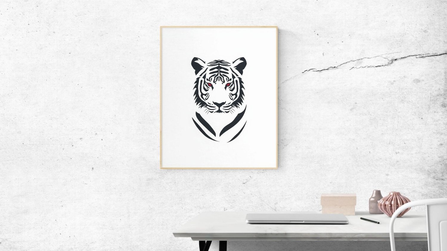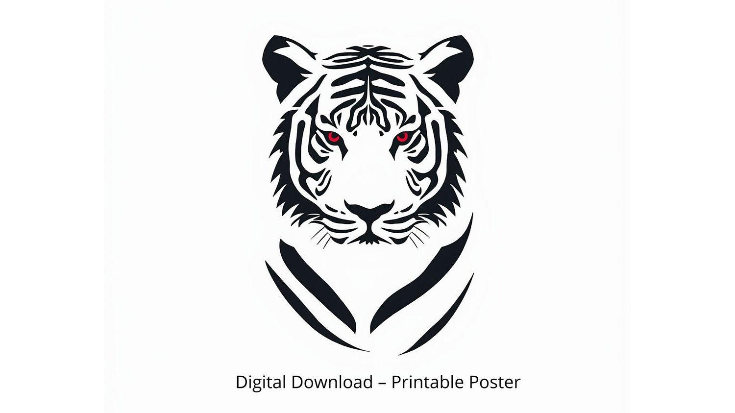 Minimalist Black and White Tiger Wall Art Printable – Modern Wildlife Art