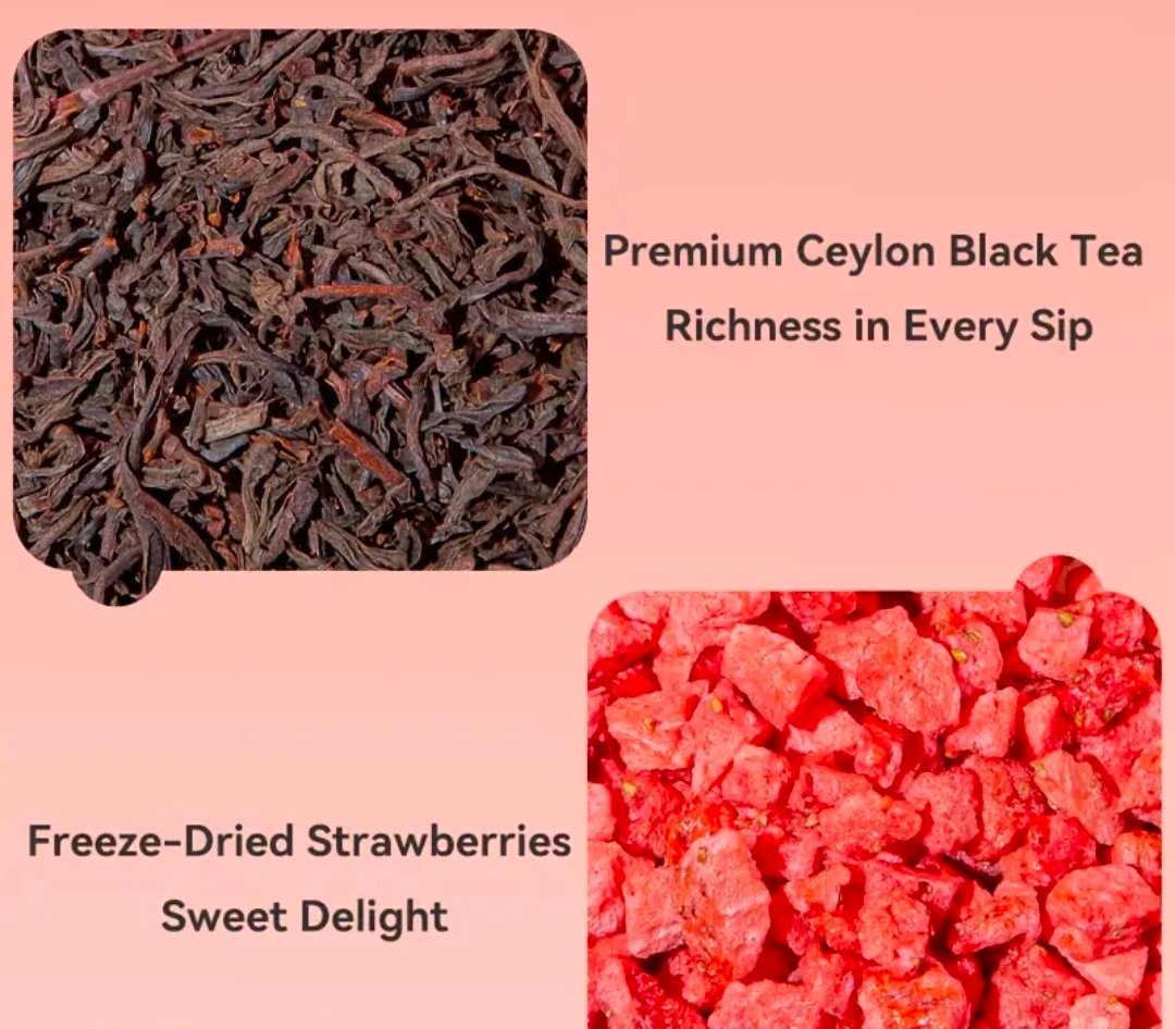 A rich black tea blended with real strawberry pieces for a naturally bright, fruity finish.