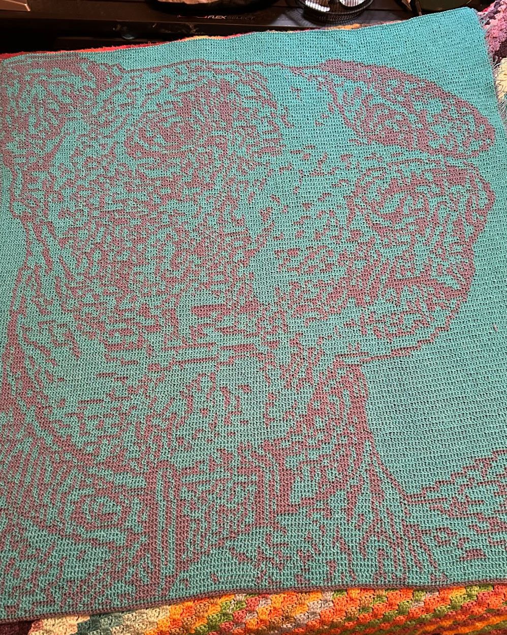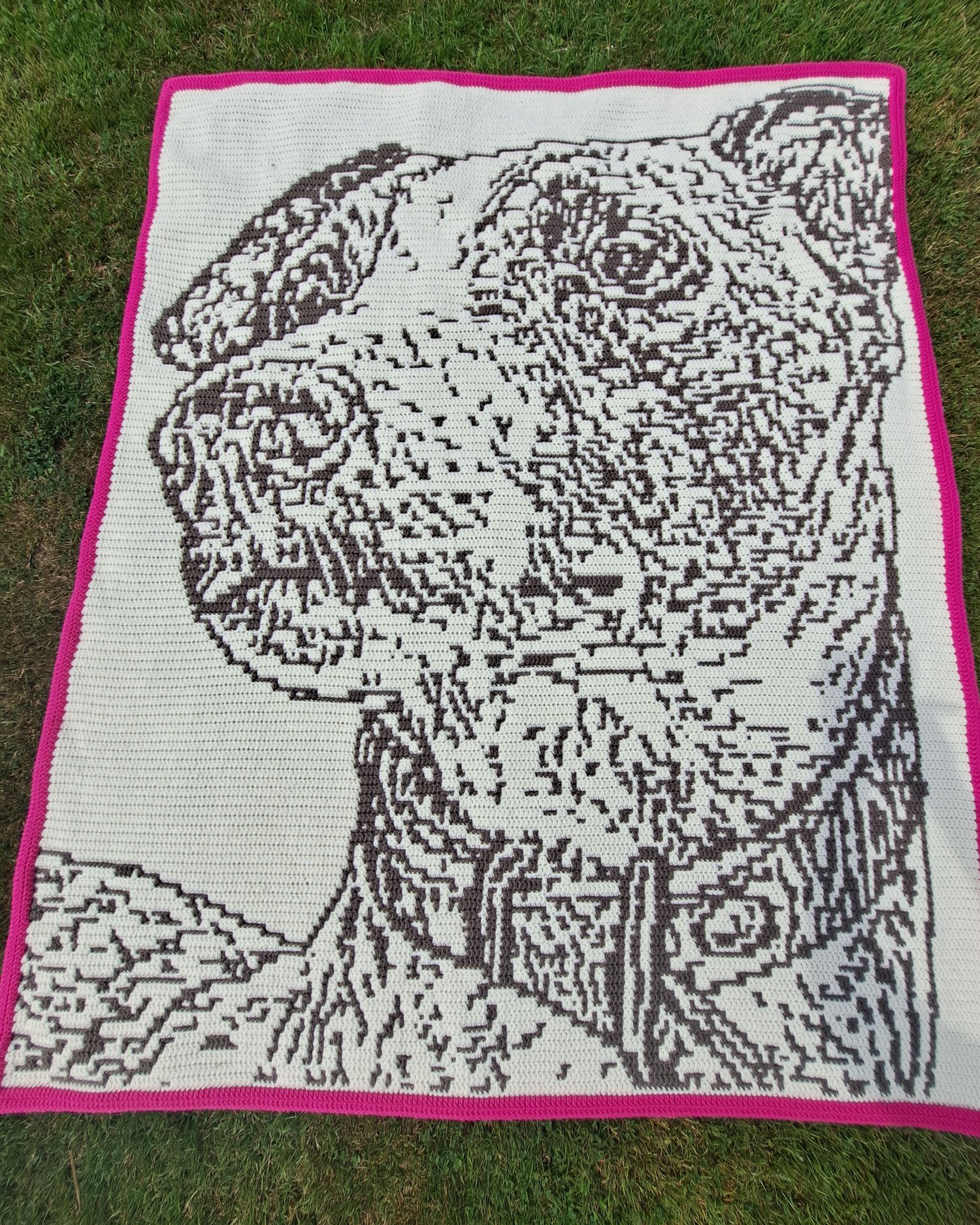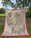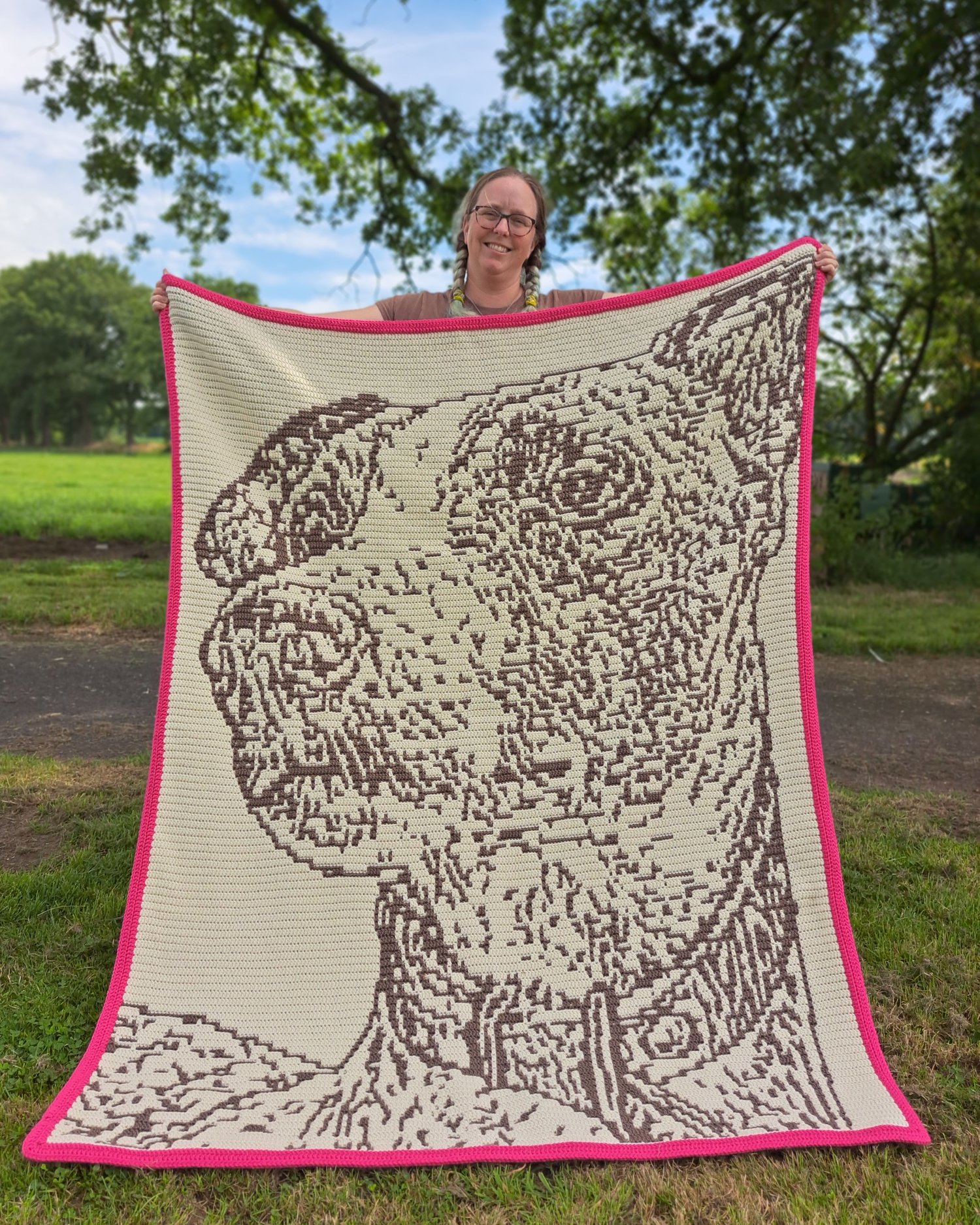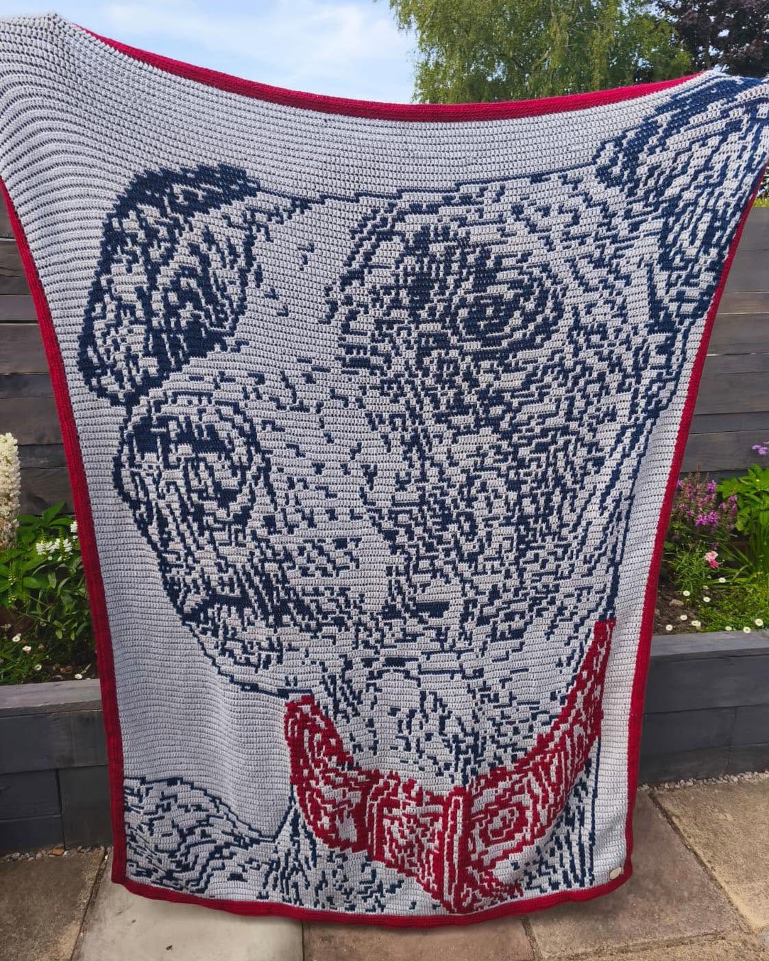 This blanket holds a very special place in my heart. The beautiful whippet featured in the design is Freya—my beloved first whippet, who I heartbreakingly lost far too soon at just nine years old. Creating this piece has given me a way to keep her close, and now I can still cozy up with her on the couch.