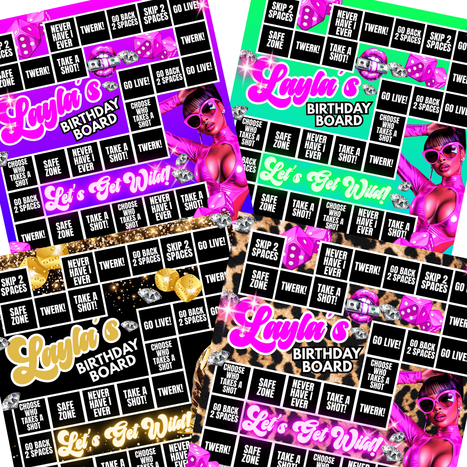 Let’s Get Wild! Editable Birthday Game Board – 100% MRR Party Game for Adults