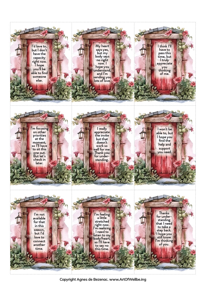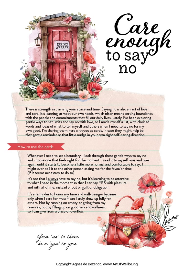 This file includes some self-care ideas to try out, some sweet phrases to personalize, some cards to "say no with love", a self-care menu challenge and more!