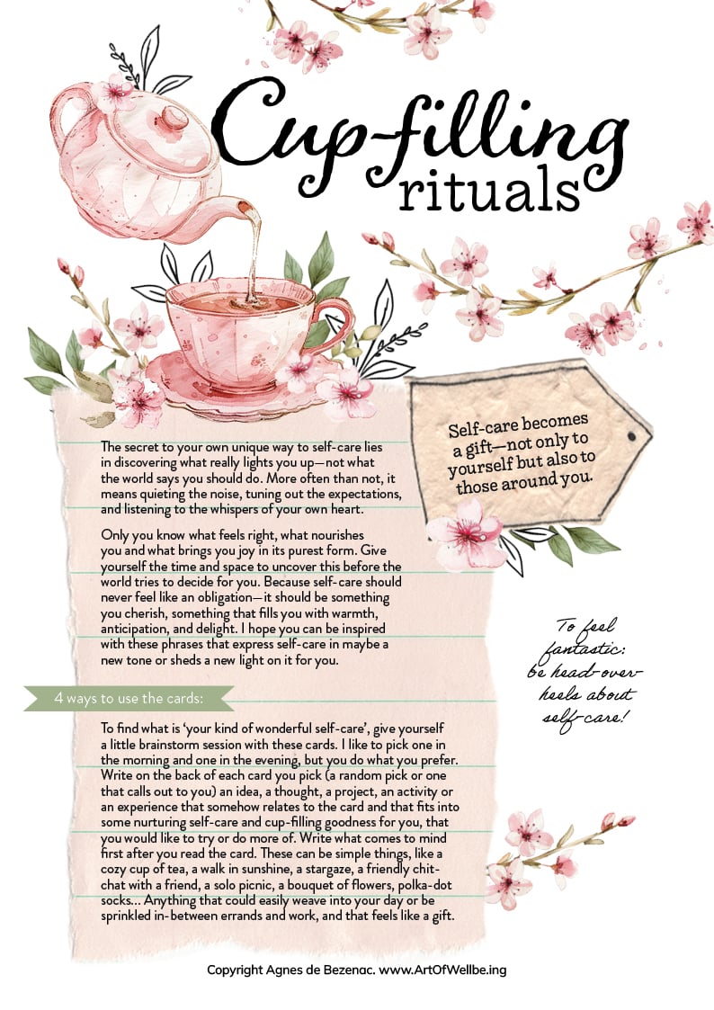 Yes, enjoy your cup of tea as you listen to your body. This one is all about self-caring and nurturing your body and mind with wonderful, healthy good things.