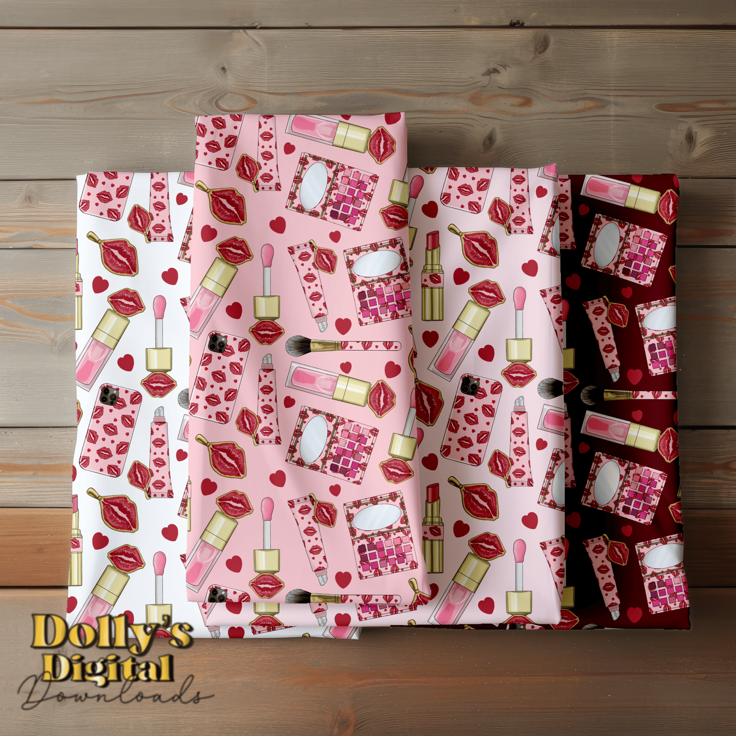 Instant digital download of our Lipstick Kisses Makeup Seamless Pattern (4 PNG’s)