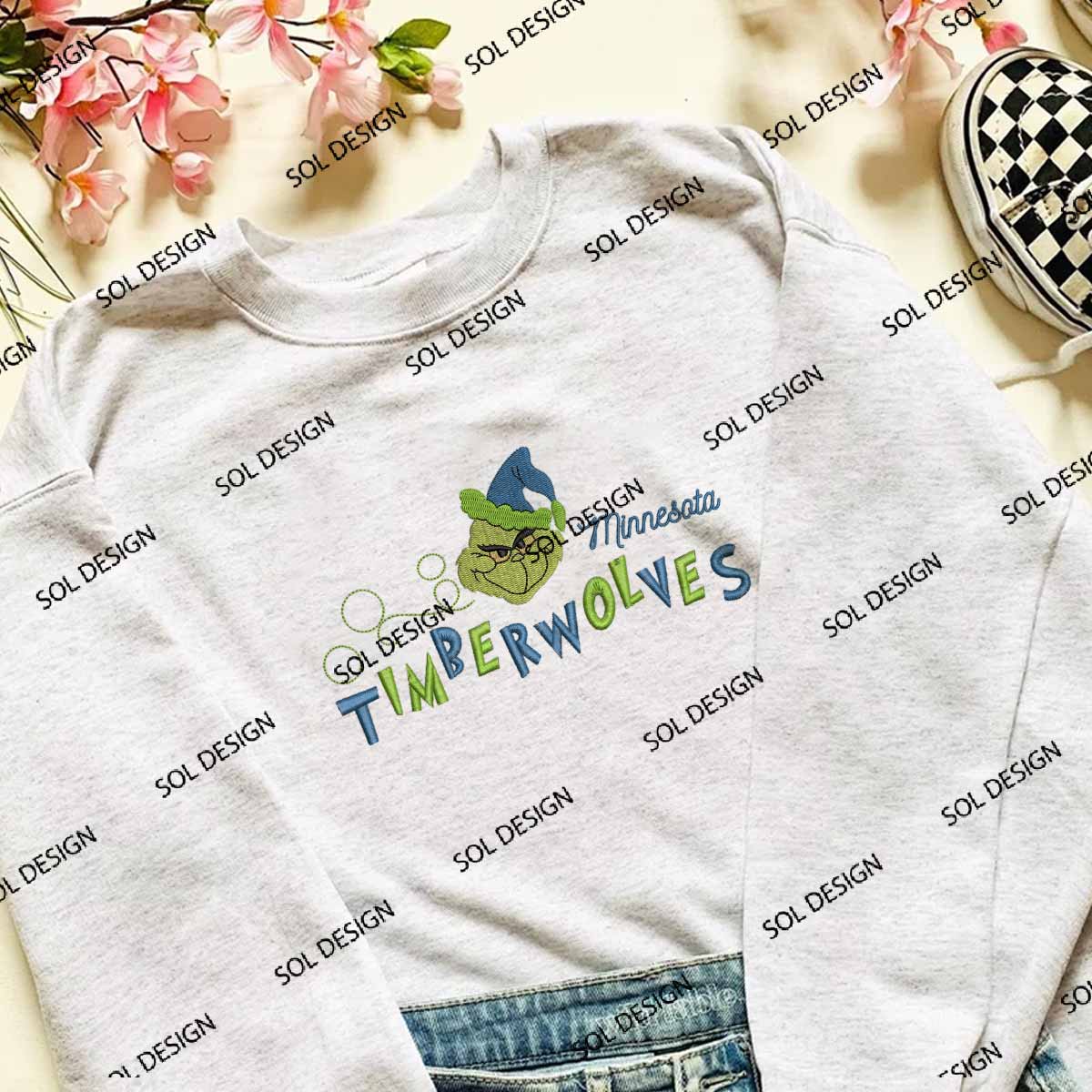 Christmas Grinch Face x Minnesota Timberwolves NBA Basketball Team Embroidery Designs, Grinch Embroidery Files, NBA Timberwolves Basketball Team Logo Embroidery, Merry Christmas Machine Embroidery Design, Digital Download