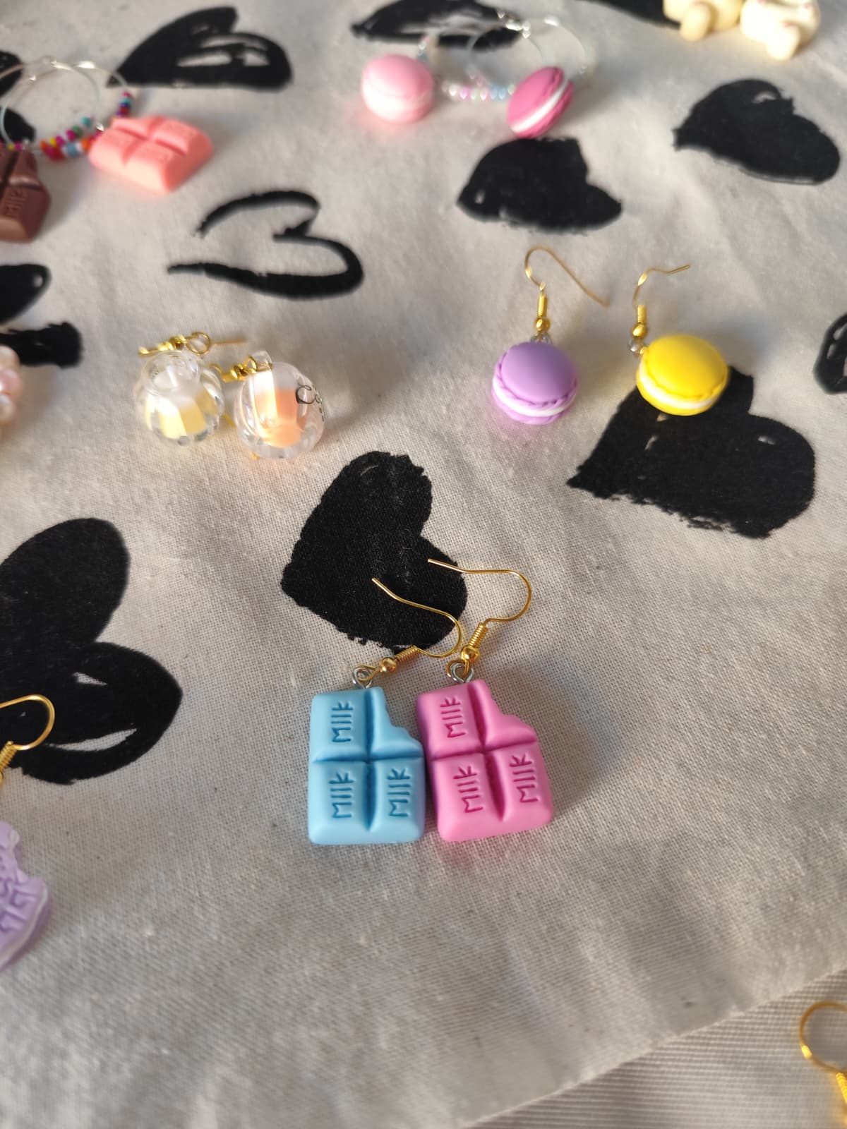 Estos pendientes de chocolate tienen un diseño tan realista que parecen recién salidos de una caja dulce… pero prometido, ¡yo no me los comí! 😄 Su acabado detallado recrea la textura y el brillo del chocolate de una forma muy llamativa y apetecible.
