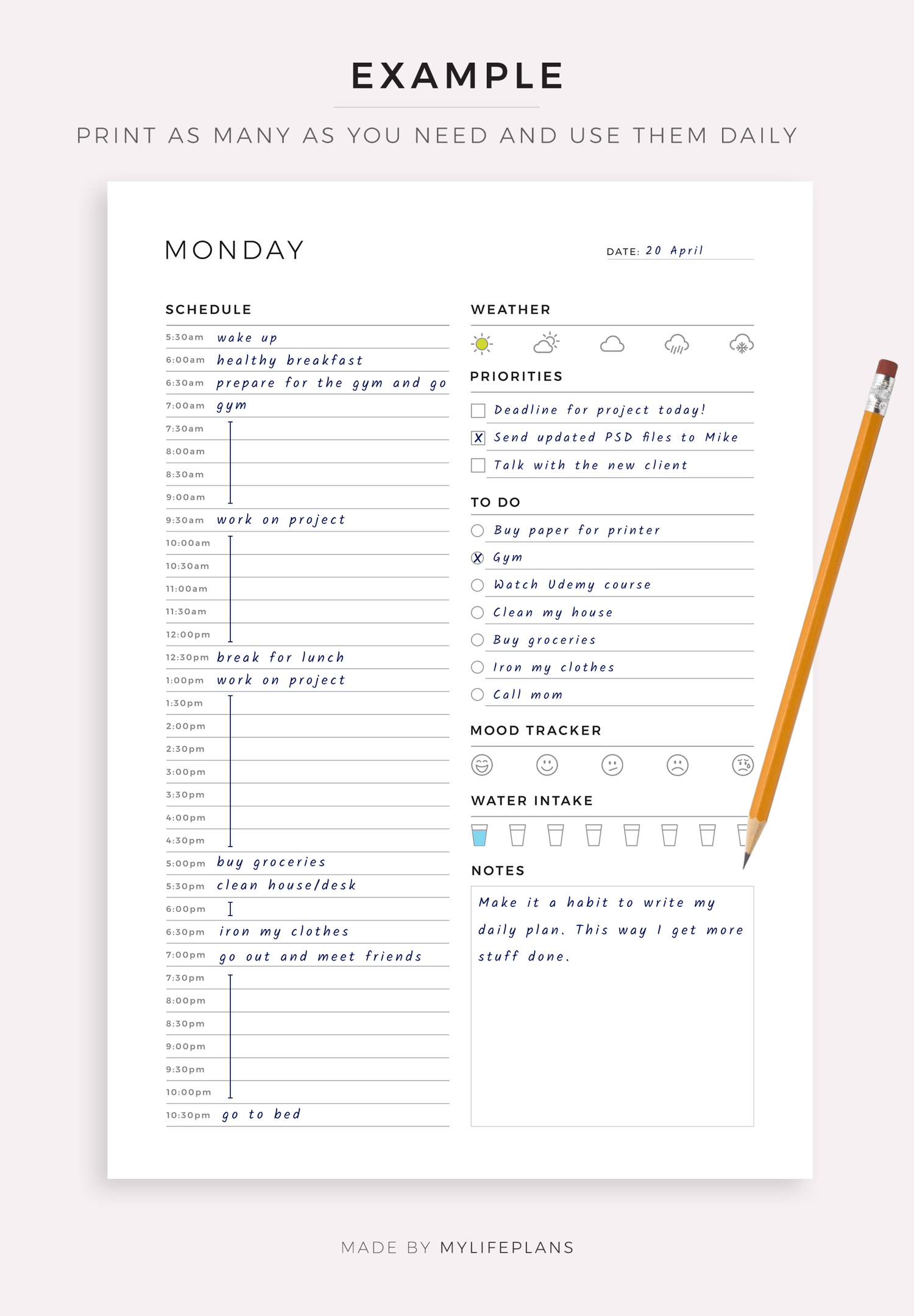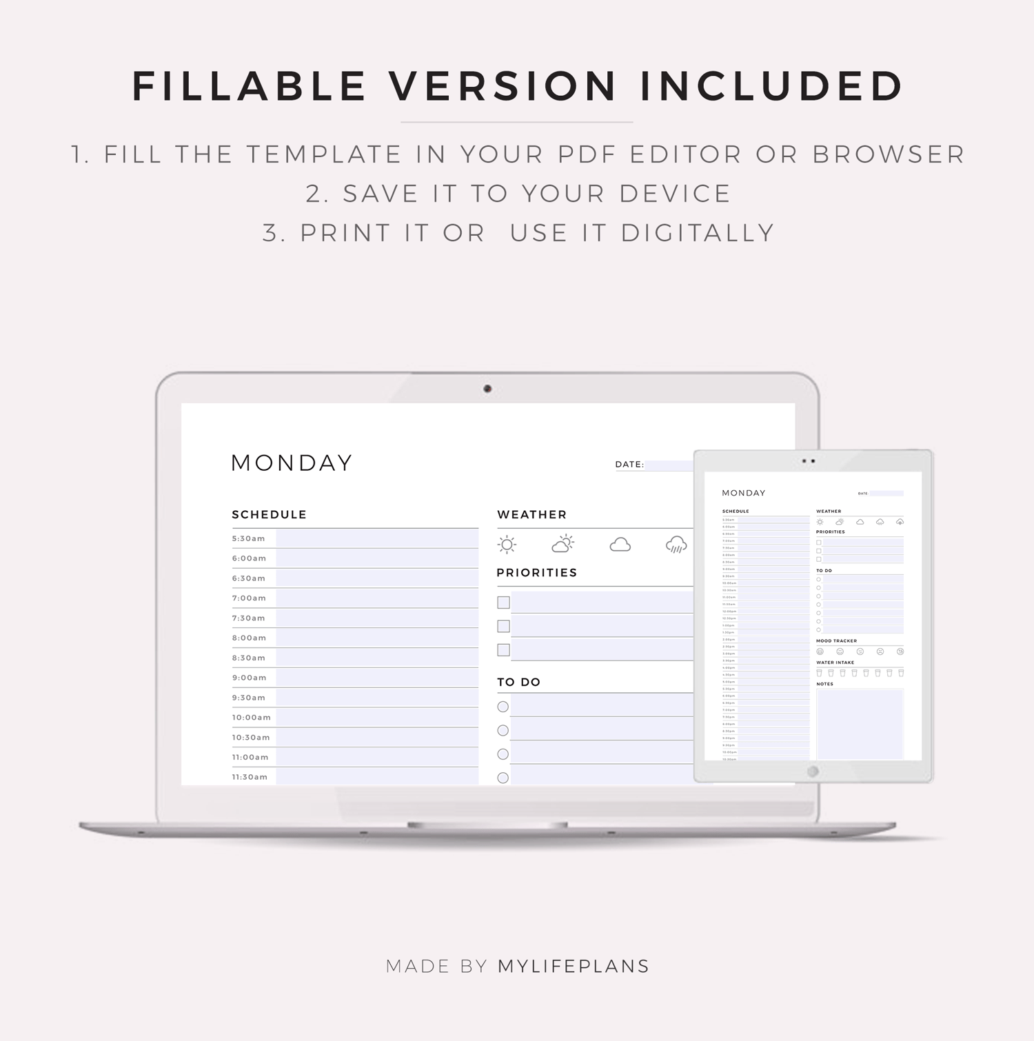 7 Day Planner, Printable & Fillable, A4/Letter Size, Instant Download