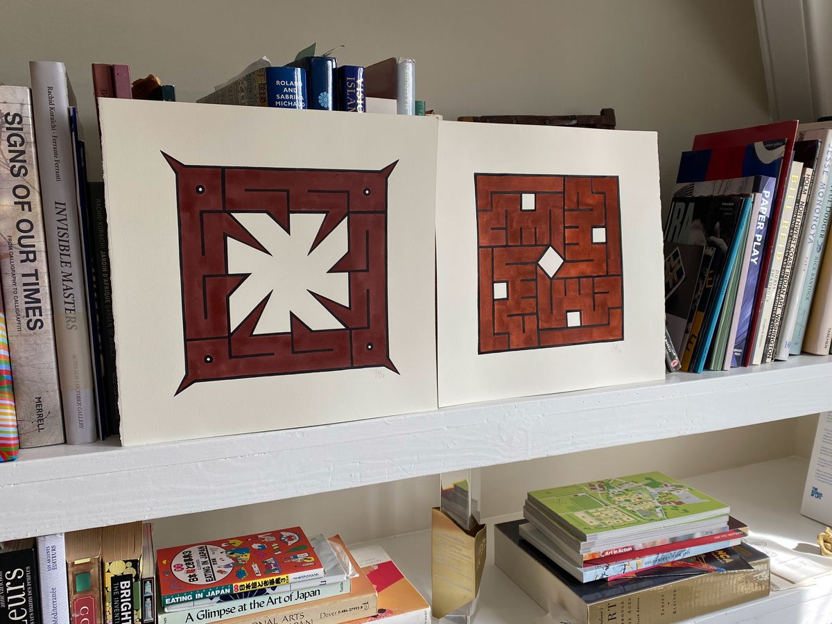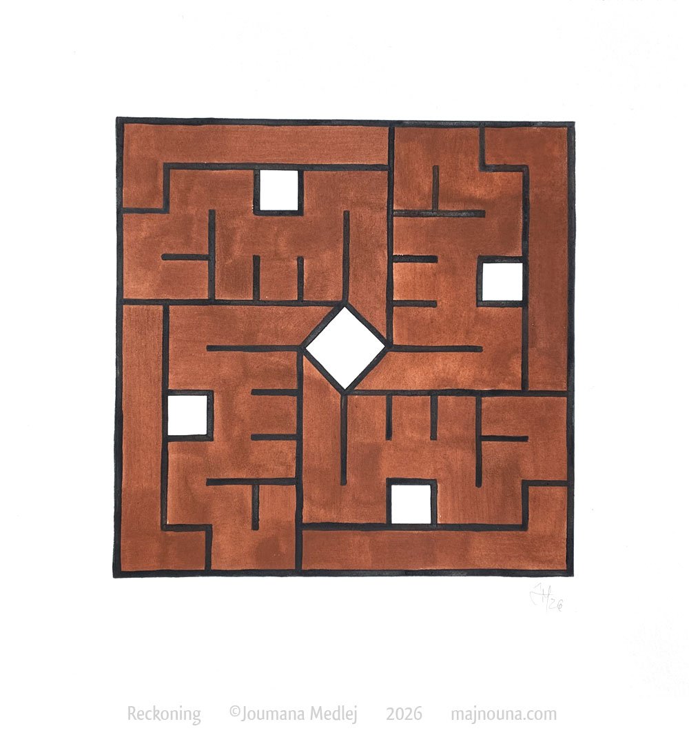 Red earth pigment from Lebanon and mineral black in gum tempera on 300gsm paper. 28x28 cm.