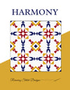 Harmony is a versatile pattern that features a 28” x 28” block which makes a lovely wall hanging. Assemble four blocks together for a beautiful throw size quilt (56” x 56”) and reveal a fun secondary pattern. Originally designed as a hand piecing pattern, Harmony works equally well as a machine pieced quilt. The pattern is written both for yardage and fat quarters and includes finishing instructions for both wall hanging and throw quilt. The pattern also includes a coloring sheet to try out different color schemes.