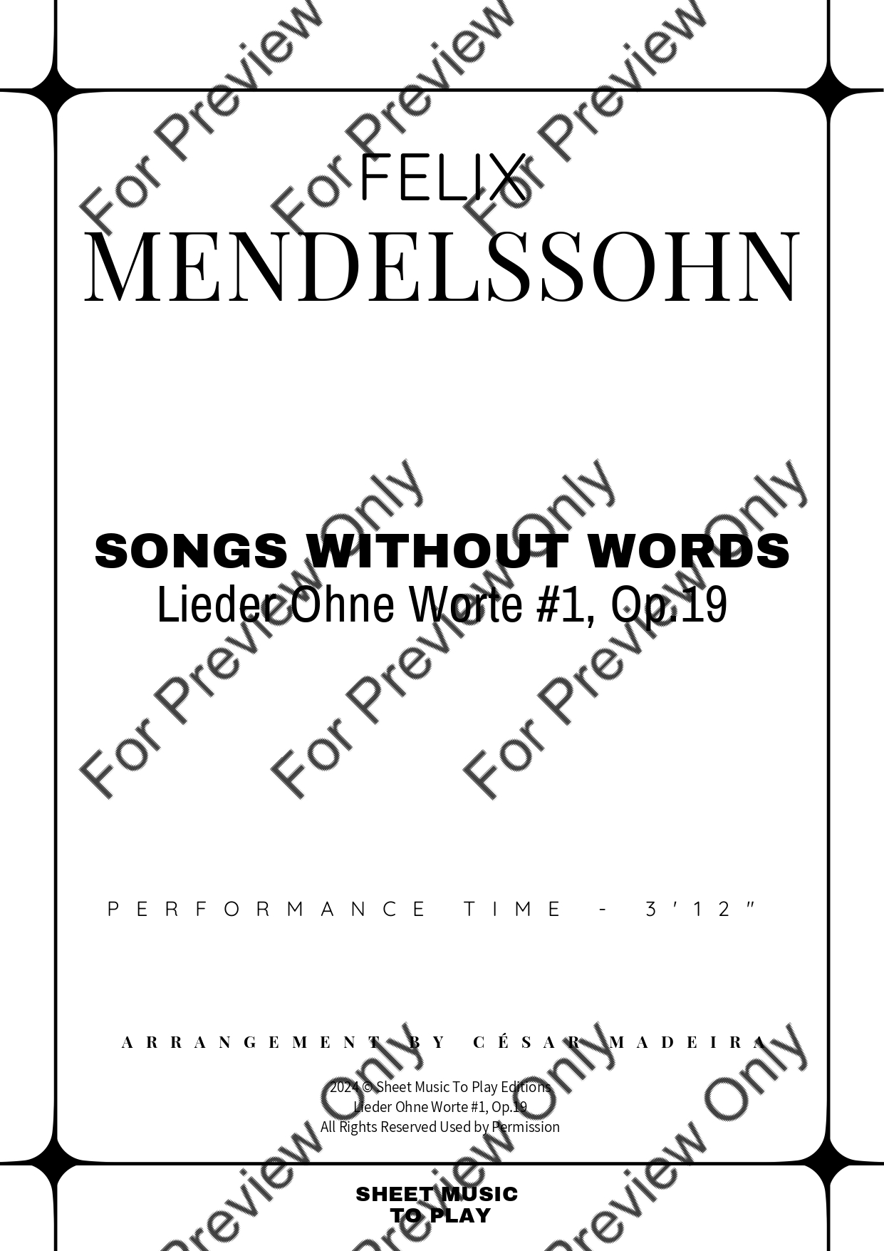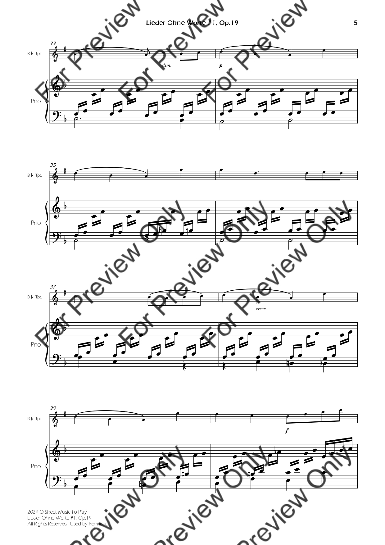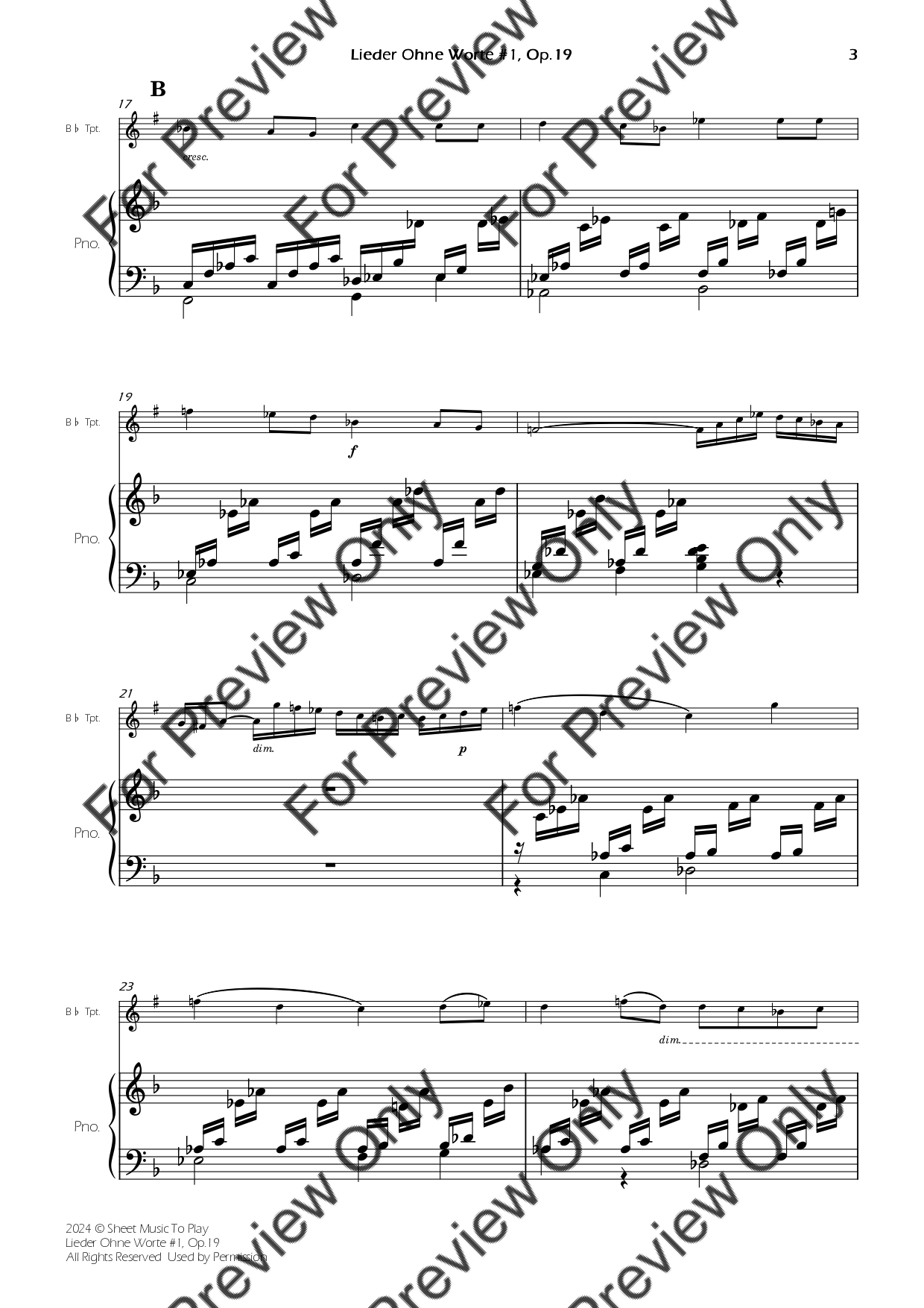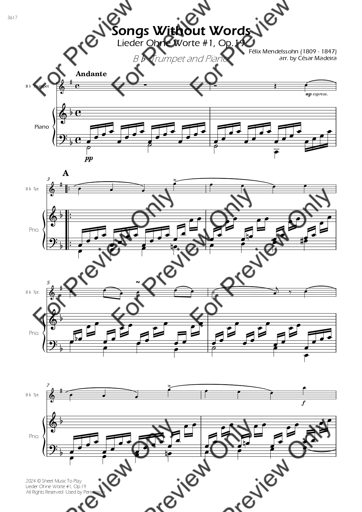 Songs Without Words No.1, Op.19 by Felix Mendelssohn. Arrangement for Bb Trumpet and Piano. With Full Score and Individual Parts. Have fun!