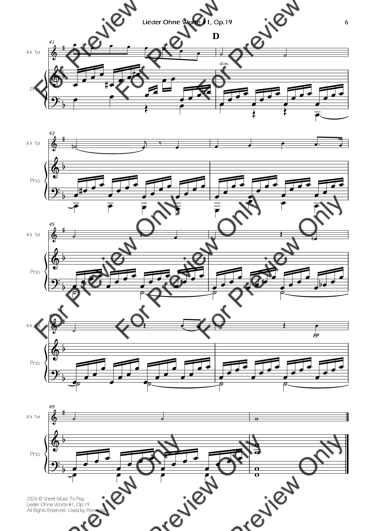 Songs Without Words #1, Op.19 - Bb Trumpet and Piano