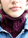Lotier is a warm and cozy cowl made out of a luxurious merino silk blend that practically glows. The lace pattern is provided in charted and written format. Uses a 16” circular needle and one stitch marker.