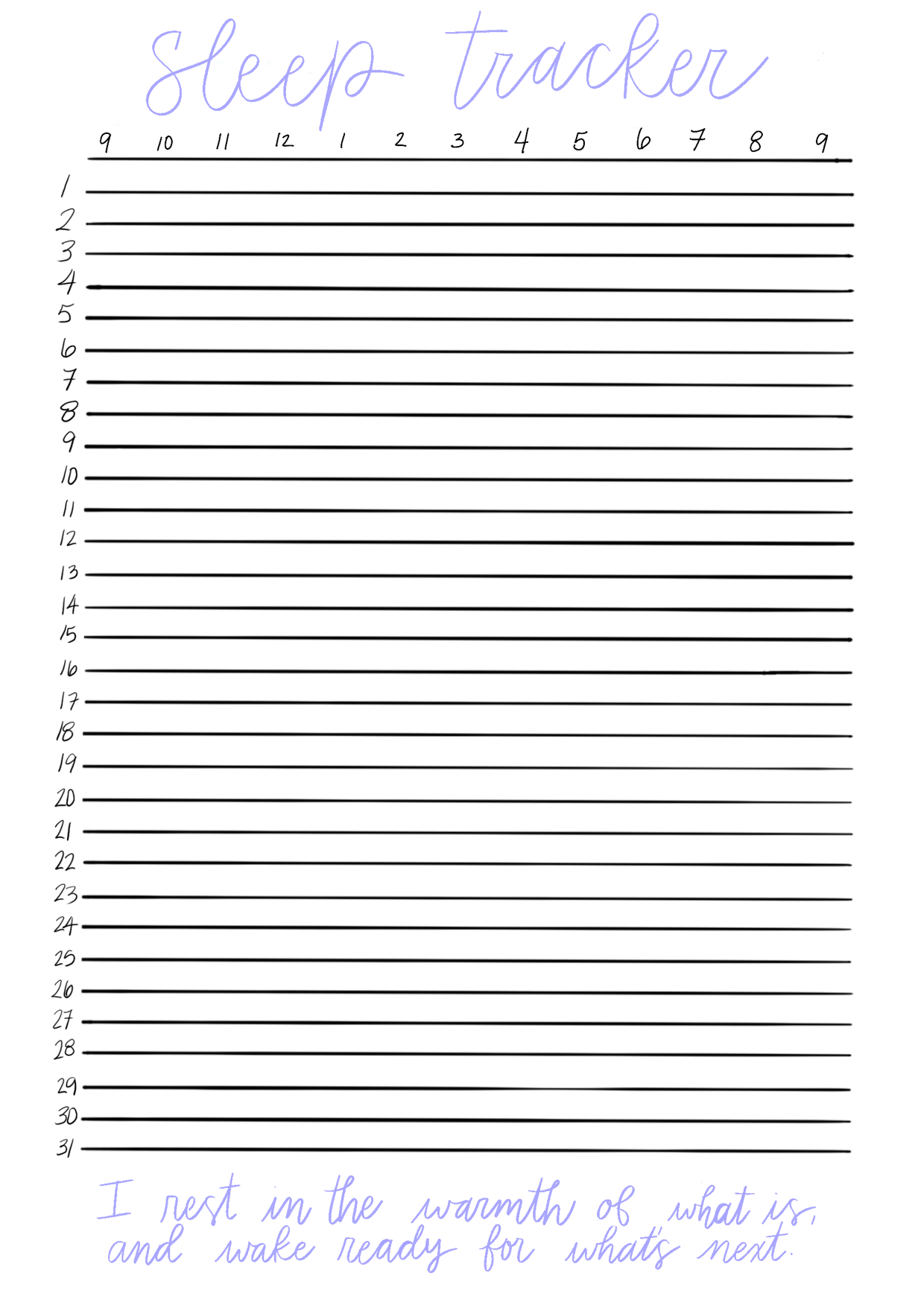 The January Sleep Tracker is designed to help you build awareness around your sleep patterns in a calm, approachable way. With a clean layout and a gentle quote for encouragement, this page supports reflection without pressure.