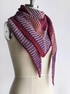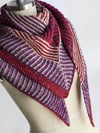 Basic brioche ribbing alternates with asymmetrical sections of striped garter stitch to give this shawl a striking, graphic look that’s sure to please.