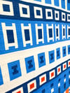 Go Quilt takes its influence from vintage woven textiles. Blowing up details to an exaggerated scale creating a bold, graphic quilt top.