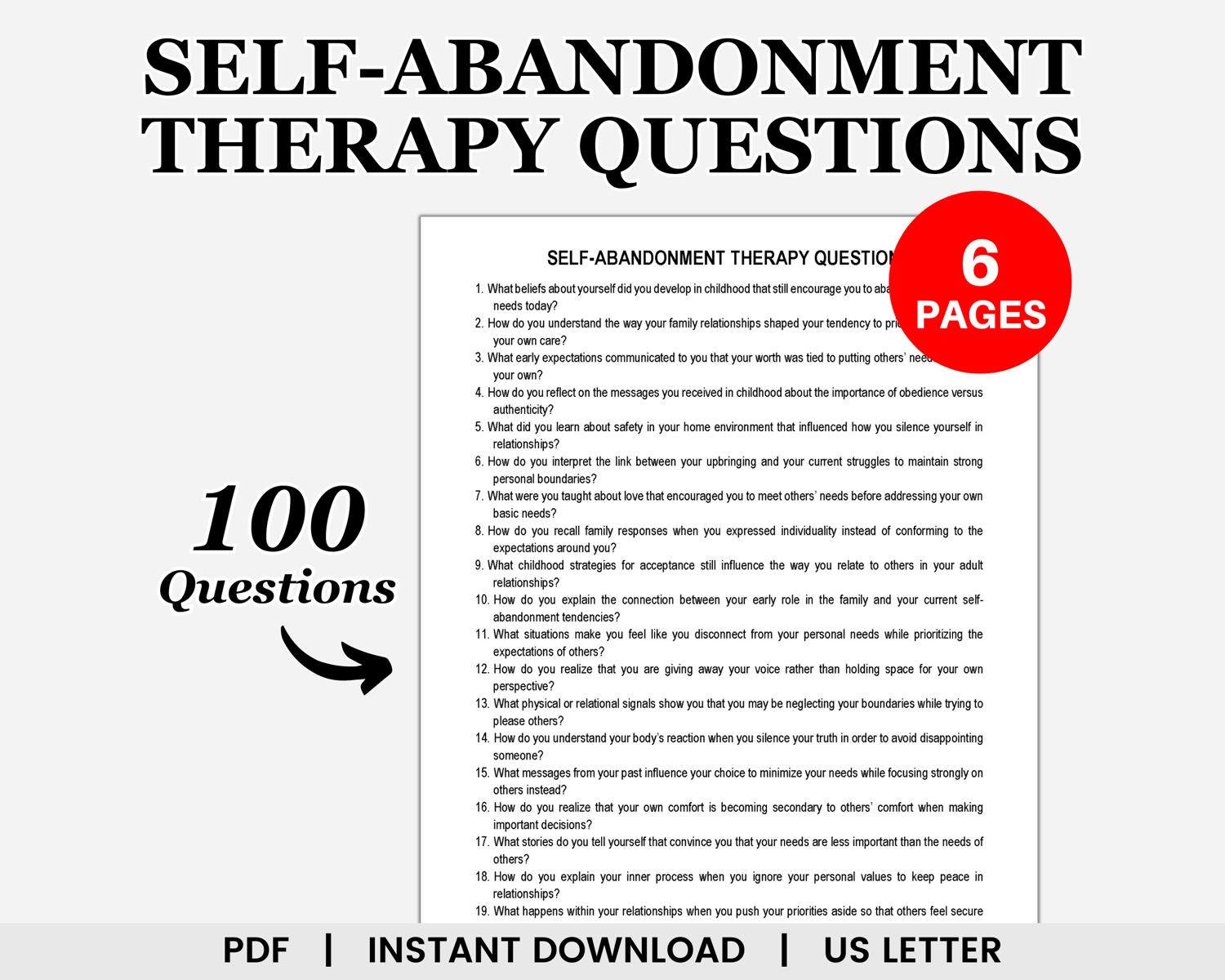Self Abandonment Therapy Questions, Self Worth, Self Trust, Self Compassion, Personal Boundaries, Childhood Trauma, Inner Child Healing