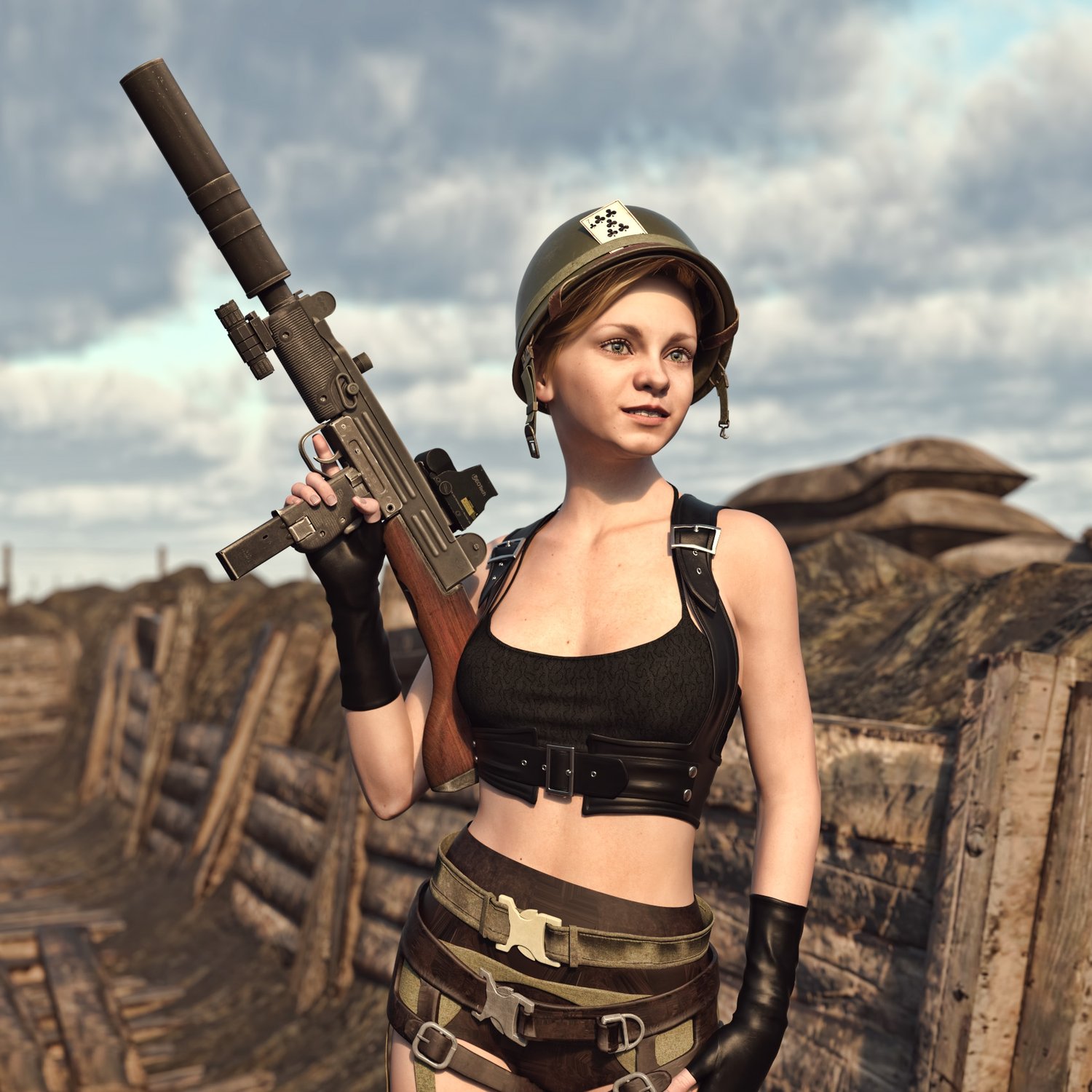 This is the full size version a classic wooden stock. Converted and rigged for use in DAZ. includes a silencer, a red dot and a light. Props are rigged so the gun can be used in a simple classic variant or as a more tactical variant. Bolt, charging handle etc also rigged for realistic pictures.